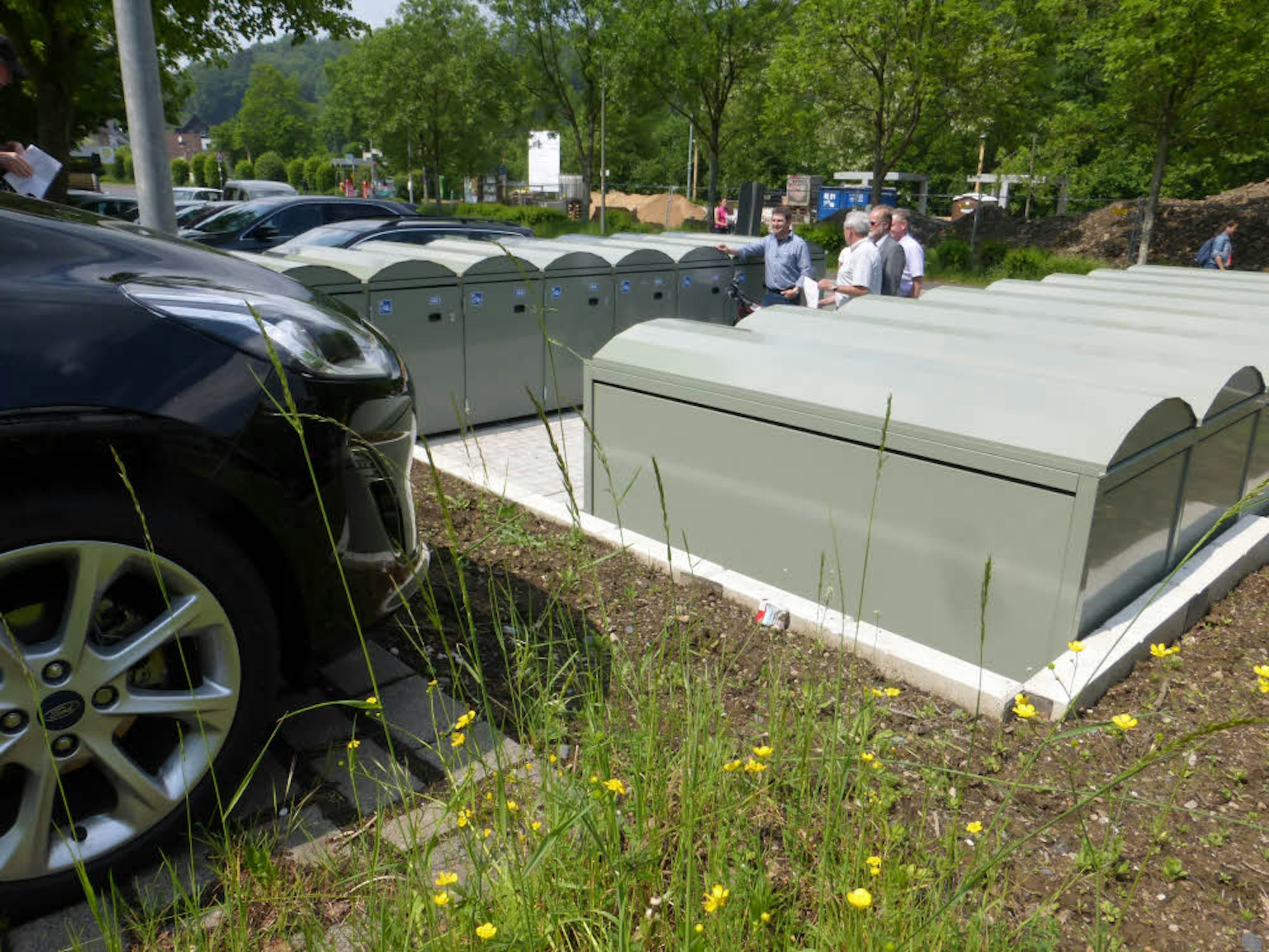 Bürgermeister Horst Krybus aus Lohmar-Birk ist natürlich zum Siegburger Bahnhof hin orientiert. Er freute sich, dass die neuen 16 Boxen für 45.000 Euro in Jexmühle zu 70 Prozent vom Nahverkehr Rheinland finanziert wurden. Bei der Boxen-Vorstellung mit dabei war auch Helga Trimborn vom Touristikverein Bergisch-hoch-vier, die sich über jede Attraktivitätssteigerung des Haltepunkts freut, weil sie mehr Touristen aus- und einsteigen sehen will, für die der Verein gegenüber im Touristikbüro nach telefonischer Anmeldung E-Bikes zur Ausleihe bereithält. Der Technische Beigeordnete Dieter Hildebrand bat wegen der begrenzten Zahl Bürger darum, sich schnell bei der Stadt für die Anmietung einer Box (60 Euro pro Jahr) zu melden. Vermietung bei Melanie Lehnen im Rathaus unter 0 22 46/15-254 oder per E-Mail: