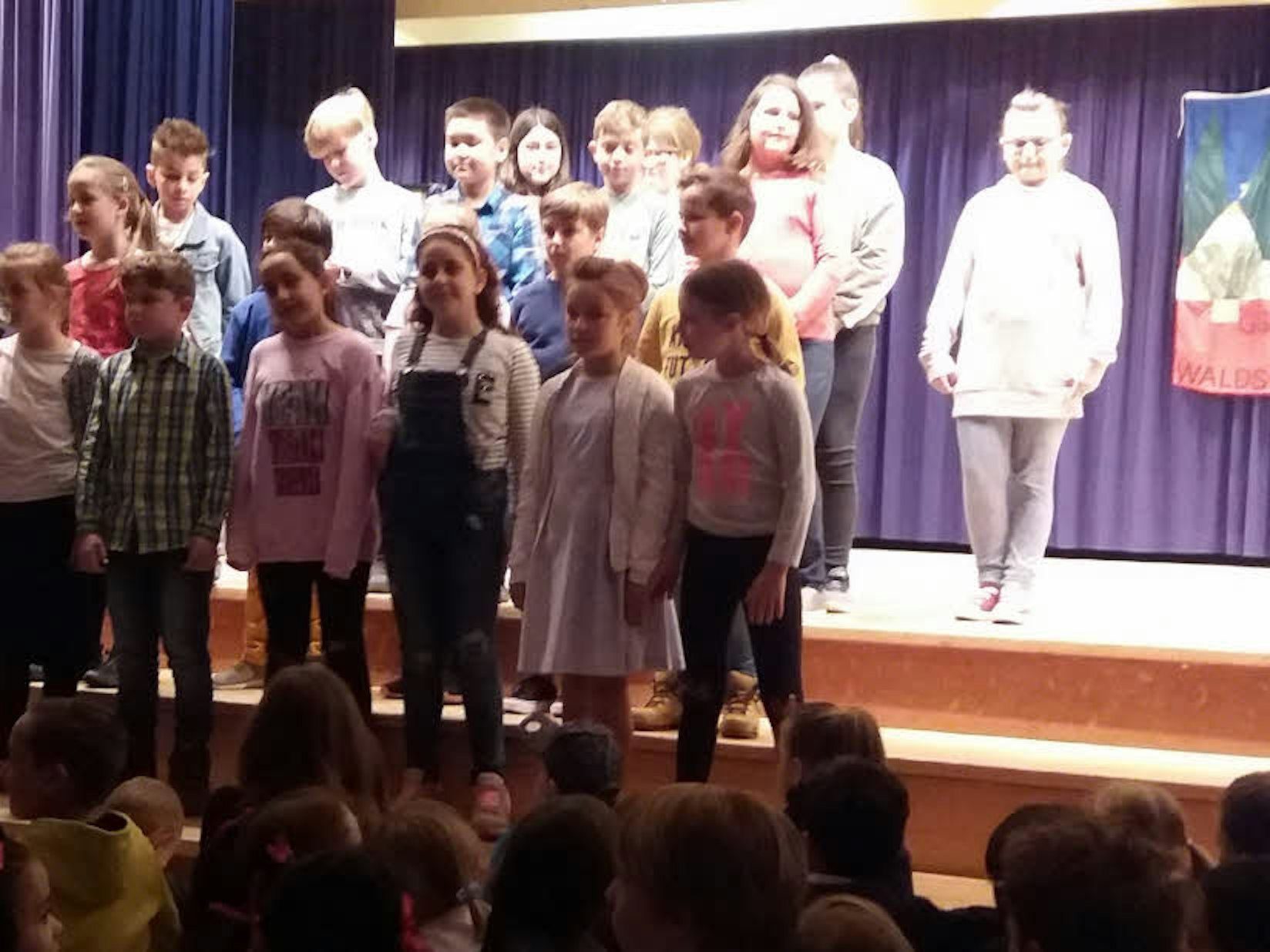 Die Klasse 4a stimmte zum Auftakt des Festaktes 50 Jahre Waldschule das Schullied an.