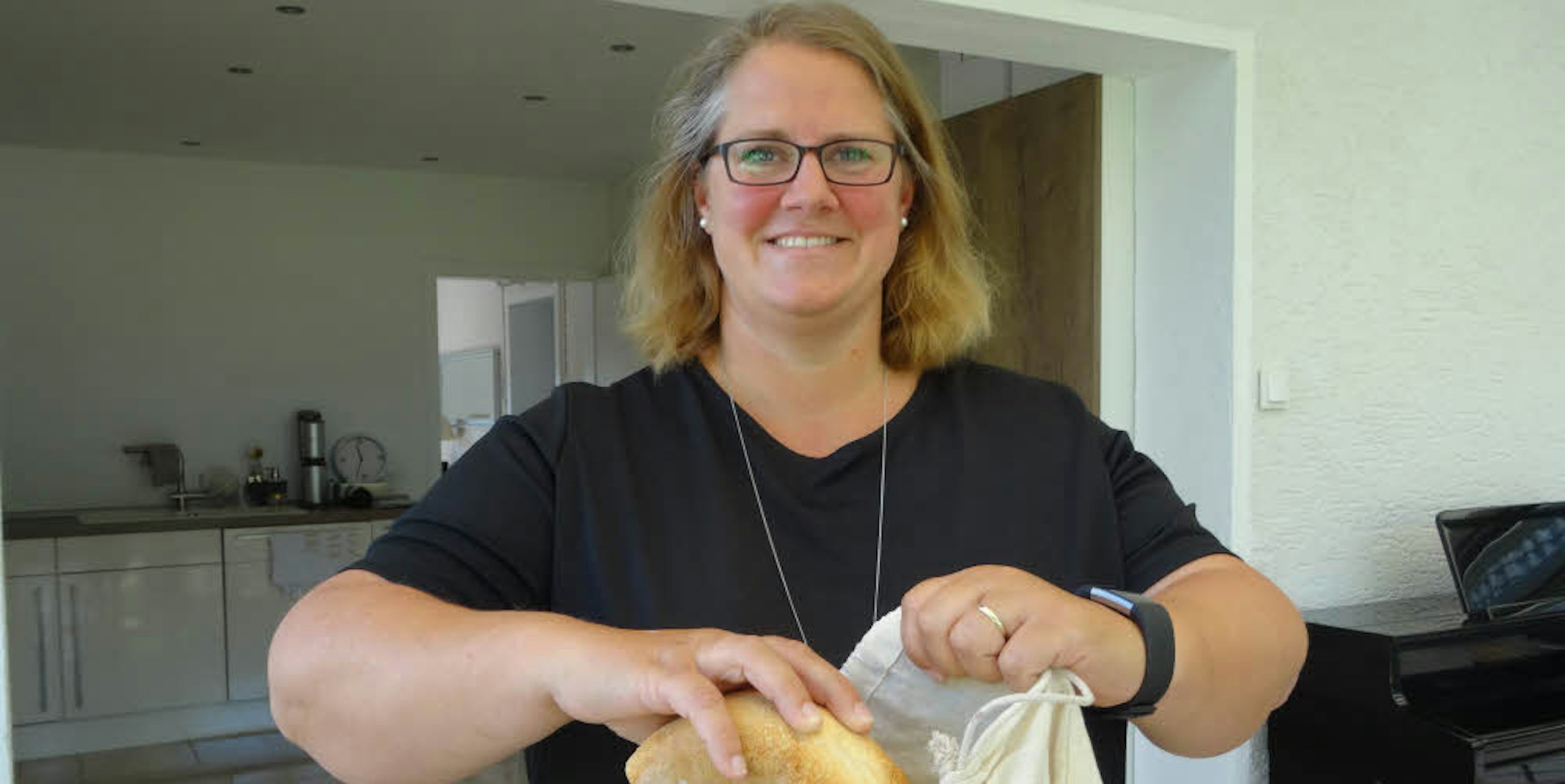 Für den Besuch beim Bäcker nimmt Eva Linden jedes Mal einen Brotbeutel aus Baumwolle mit.