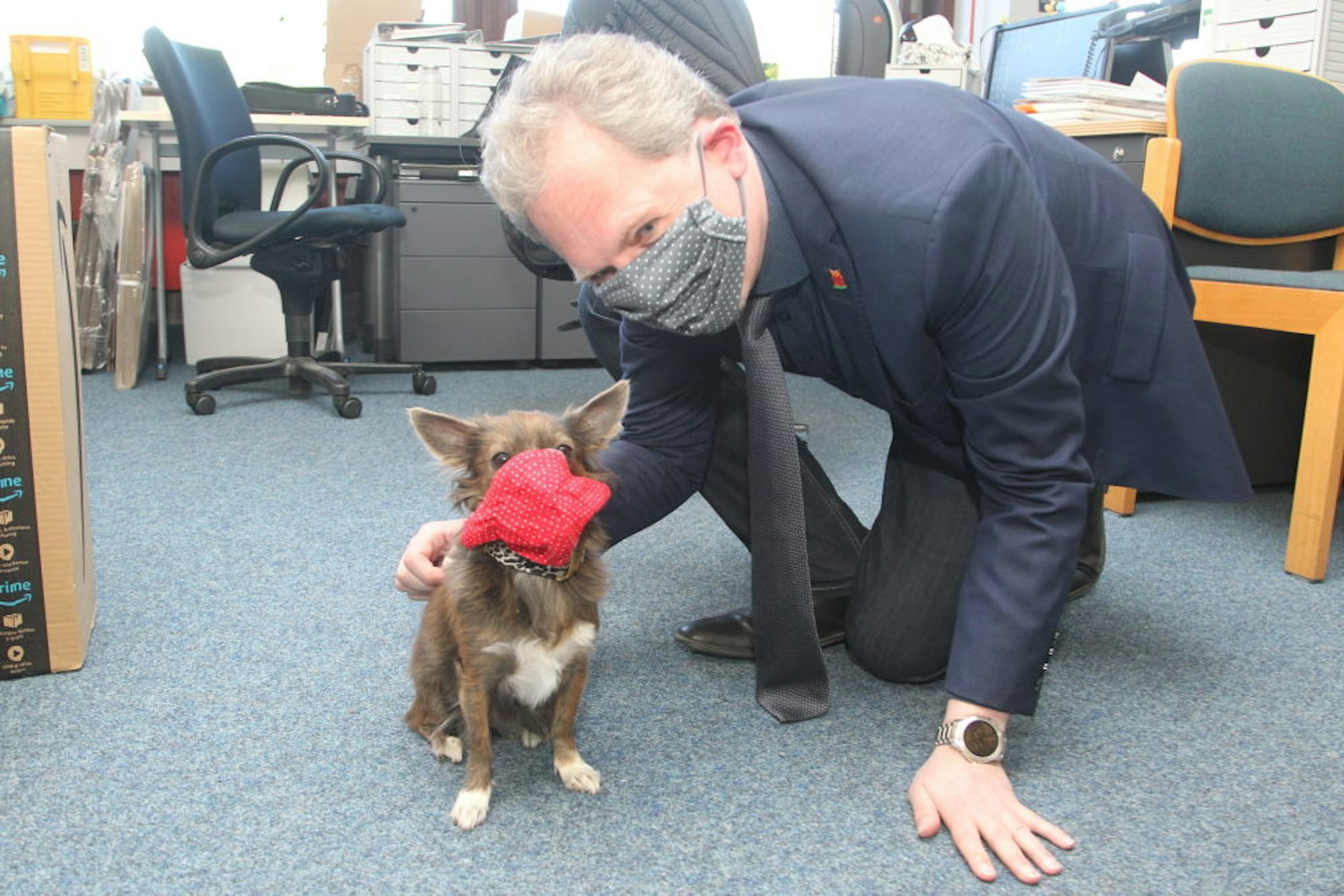 Gutes Beispiel: Anno-Rektor Sebastian Kaas und Schulhund Haley.