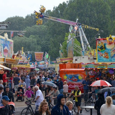 Die Fahrgeschäfte liefen dennoch an, mit Musik und bunten Lämpchen locken sie über Pfingsten die Besucher. Auch Ortsvereine sind mit Ständen vertreten. Parkplätze in der Eifelstraße und im Gewerbegebiet Mondorf sind ausgeschildert, das Ordnungsamt wird verstärkt unterwegs sein.