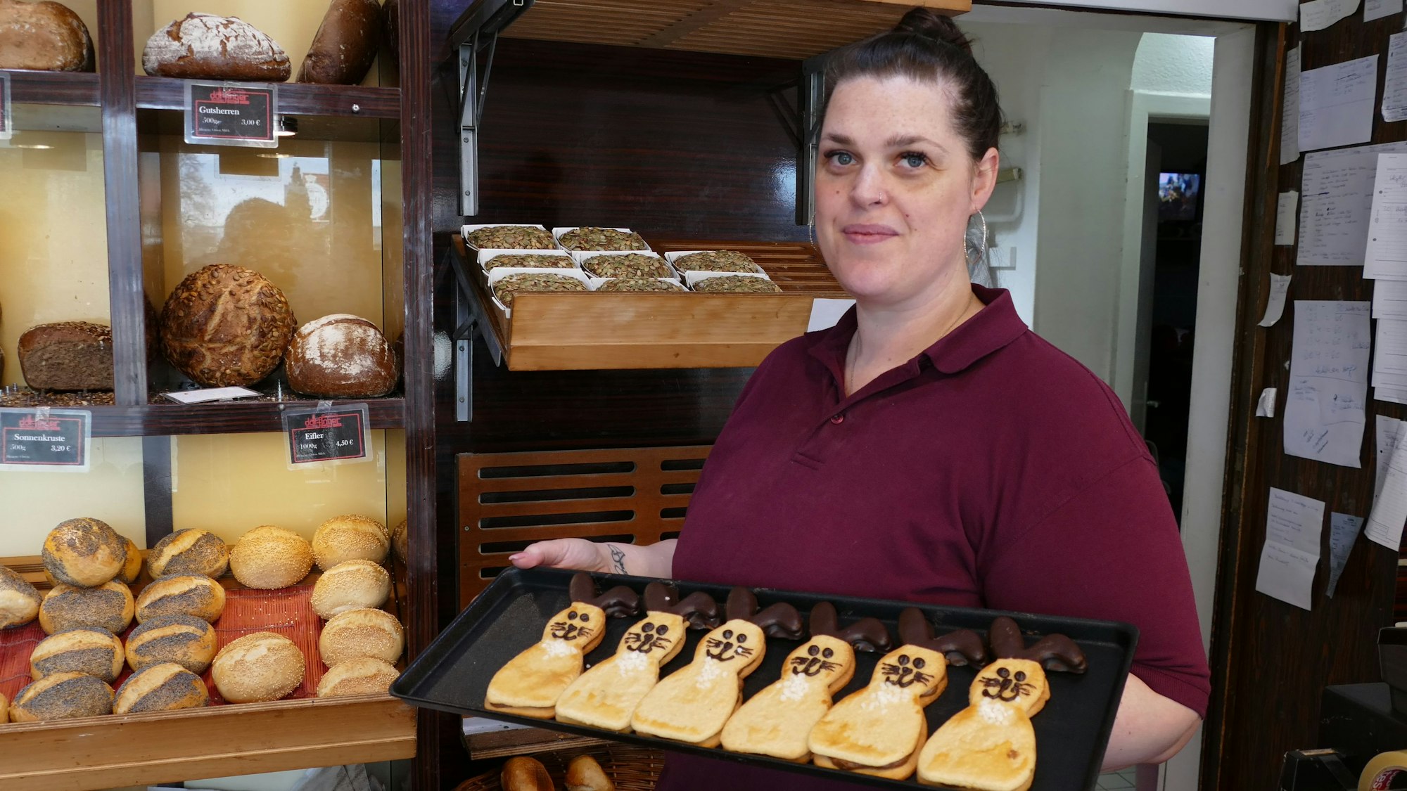 Das Backen liegt ihr trotzdem am Herzen: „Ich bin mit Herz und Seele Bäckerin, man kann so kreativ sein und aus ein paar wenigen Zutaten etwas gestalten.“ Auch Pia Schmitt mag das ständig wechselnde Sortiment. Zu Neujahr backt sie Brezeln, an Karneval Berliner und jetzt die Häschen. „Das war es jetzt auch erst mal mit dem saisonalen Gebäck, erst im Herbst geht es mit Weckmännern wieder los“, sagt die 28-Jährige. „Vielleicht mache ich im Mai Marienkäfer.“