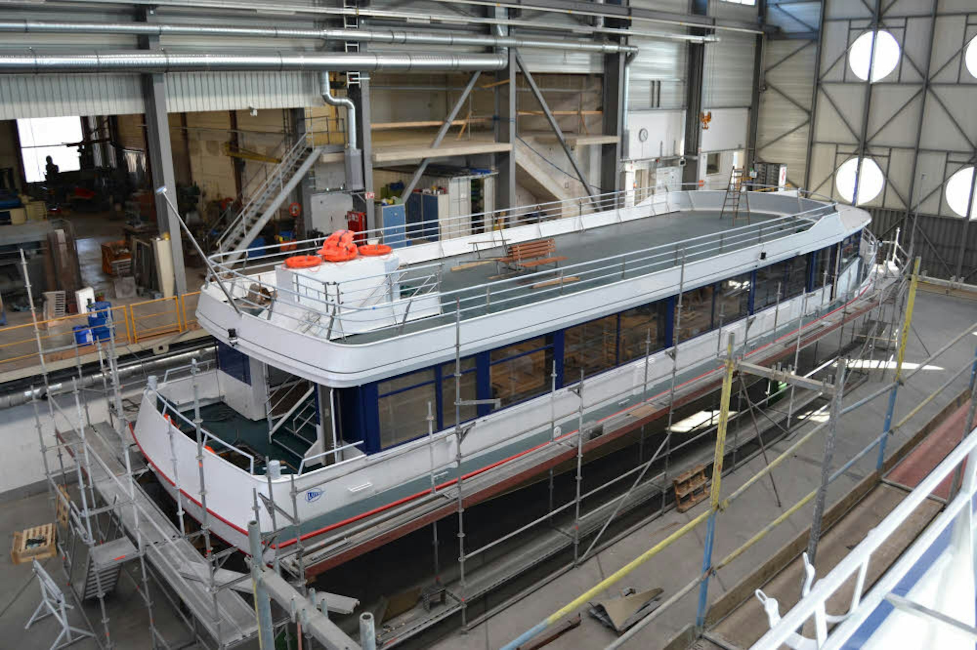 Ein Schiff zu bauen, sei fast so ähnlich, wie wenn man ein Haus errichte. „Man braucht sechs bis neun Monate dafür“, erläutert Miebach-Oedekoven. Alle Gewerke seien vertreten: Schlosser, Schweißer, Elektriker, Isolierer, Maler, Mechatroniker und Schreiner. „Man sagt immer, eine Werft beschäftigt noch mal dreimal so viel Leute drum herum“, berichtet der Geschäftsführer lachend. Man brauche ja nur mal an die vielen Zulieferteile wie Fenster und Stahl zu denken.