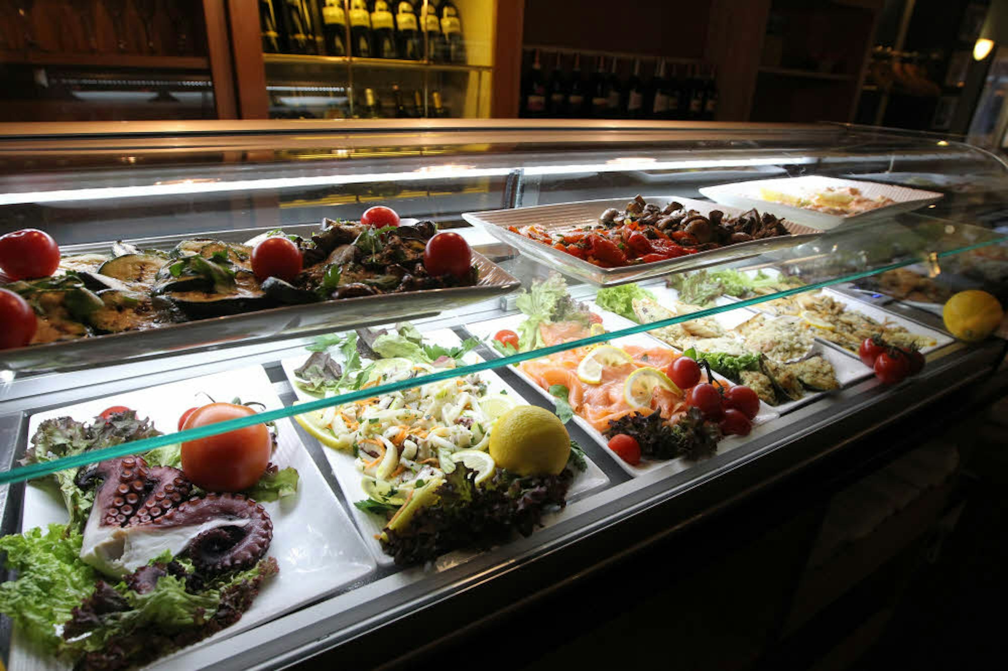 Wer einen Blick in die Vitrine wirft, stellt schnell fest, dass Fisch eine tragende kulinarische Rolle spielt. „Schon bei den Antipasti werden Freunde von Fisch und Meeresfrüchten künftig immer auf ihre Kosten kommen“, verspricht Fatone.