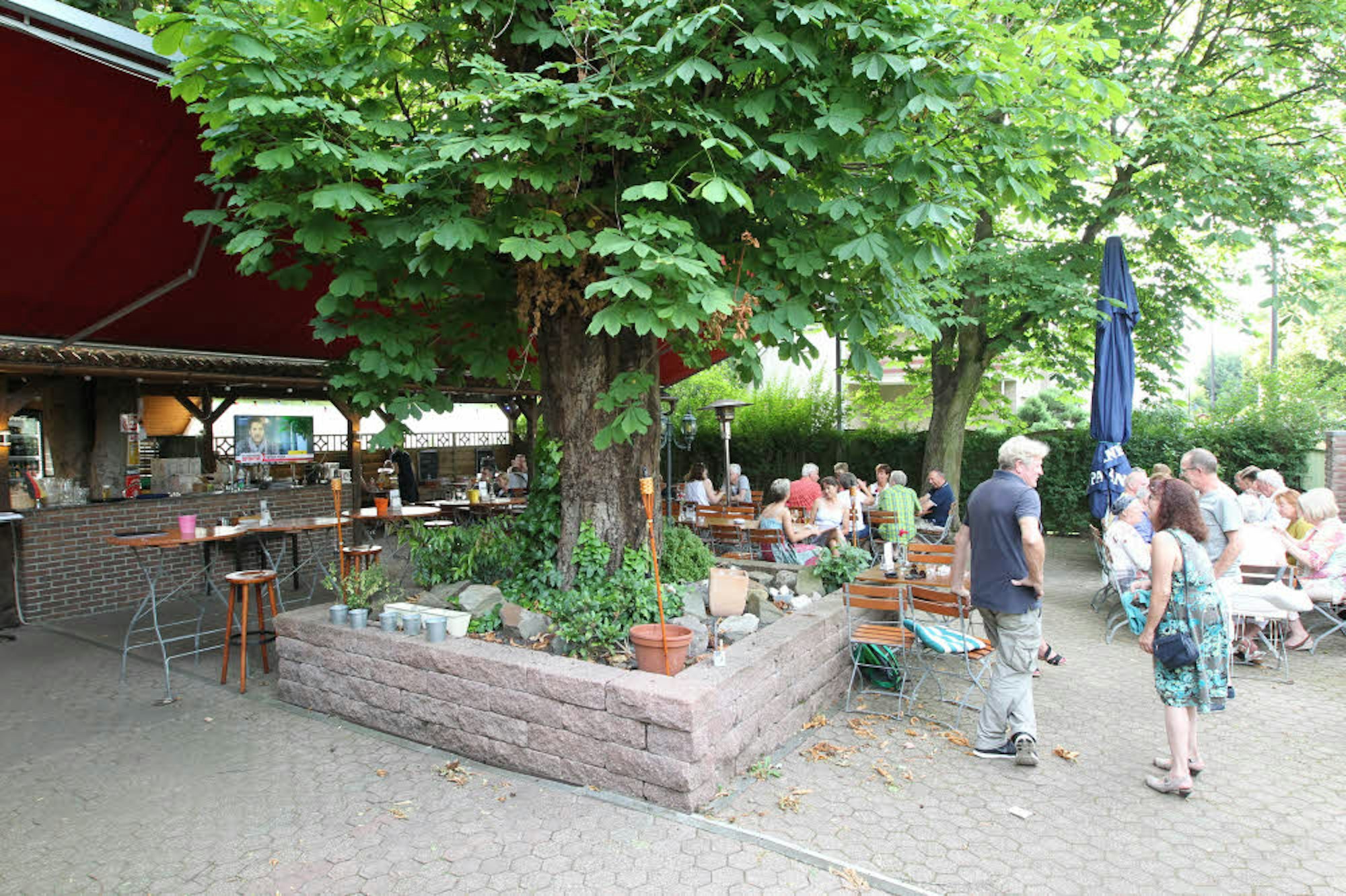 100 Sitzplätze draußen unter Bäumen wie auch drinnen bietet das Waldschlößchen in Troisdorf-Spich.