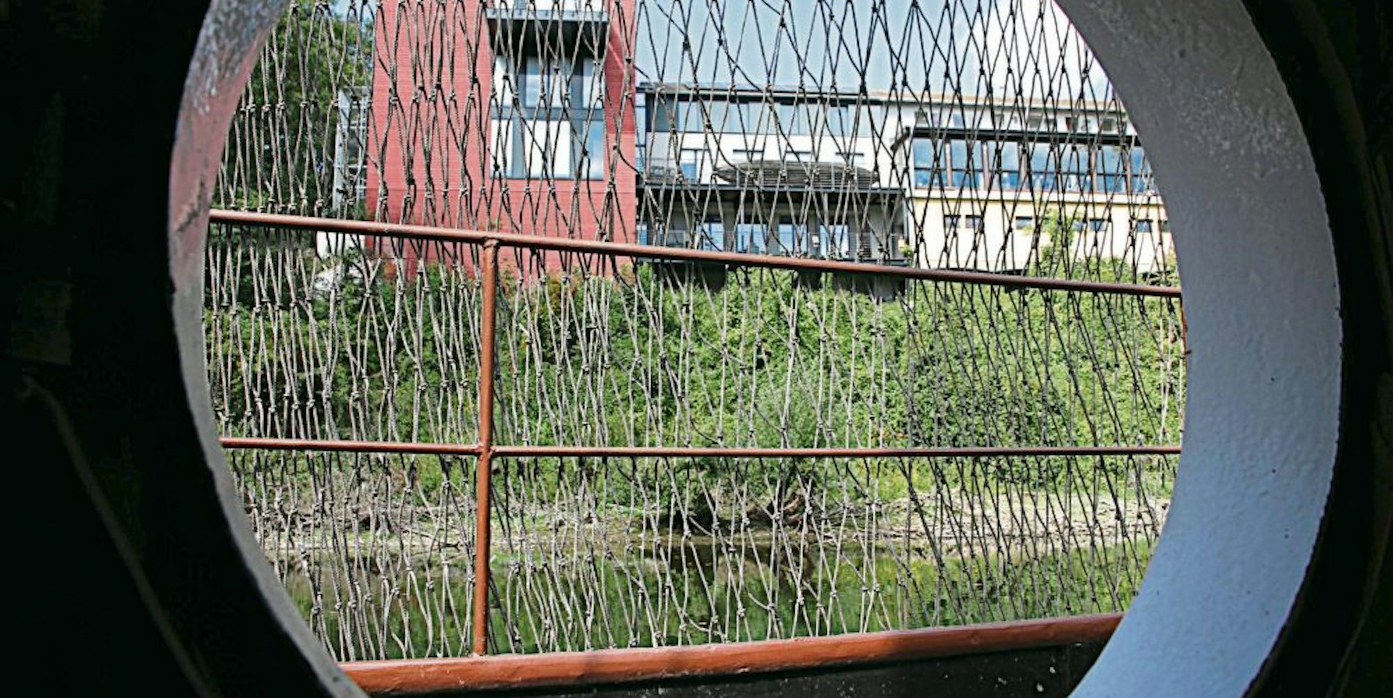 Das Fischereimuseum in Troisdorf-Bergheim, hier vom Aalschokker aus gesehen.