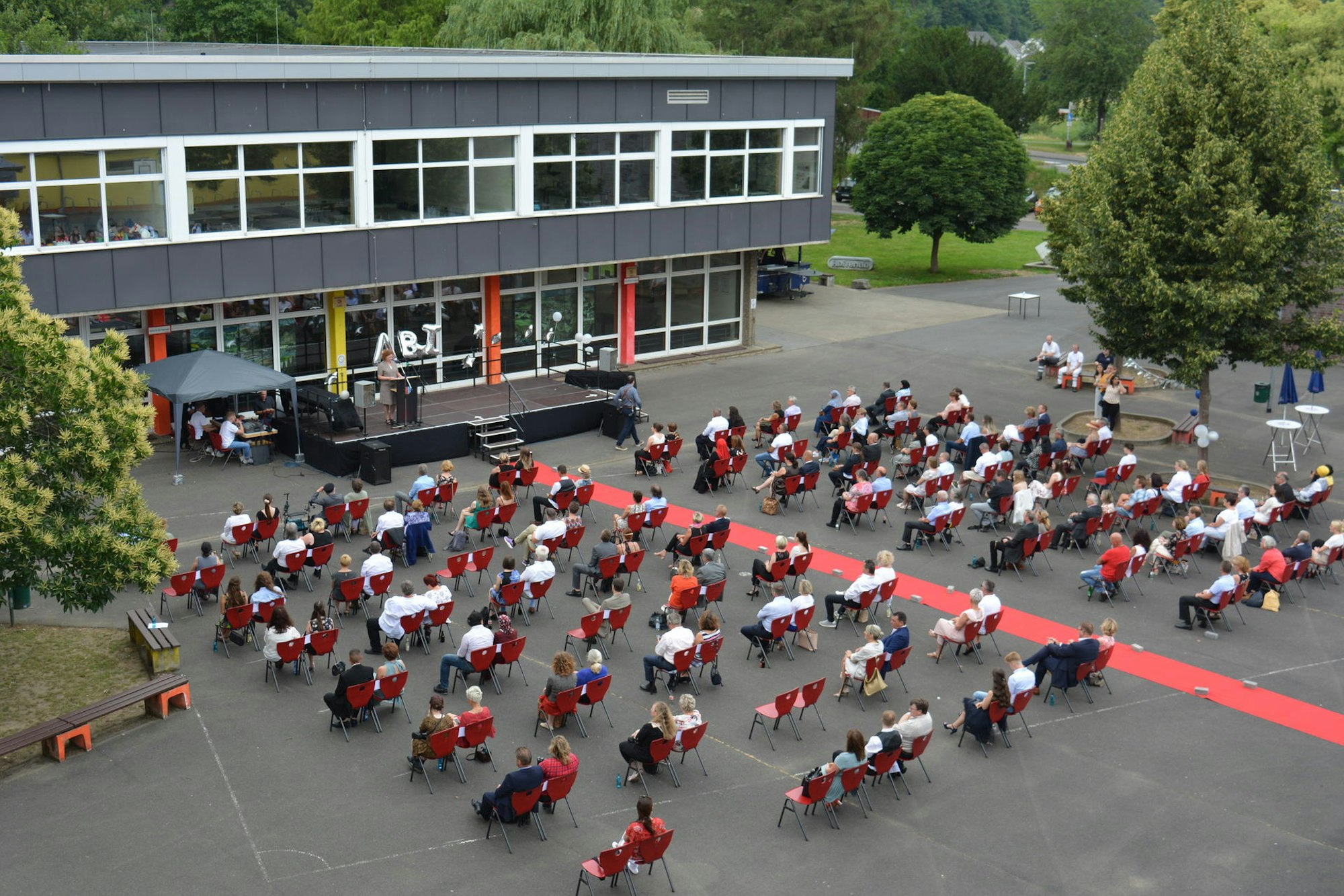 Das Siegtal-Gymnasium Eitorf nutzte den Schulhof für die Zeugnisübergabe und hatte Glück mit dem Wetter.