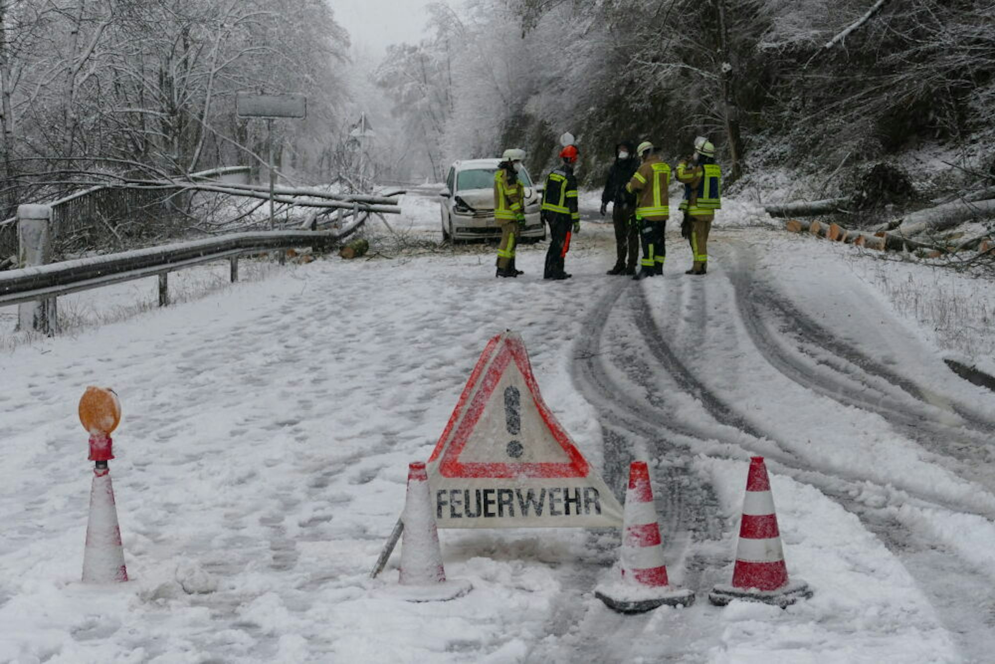 Den Feuerwehren im Rhein-Sieg-Kreis bescherte der Schneefall 110 Einsätze – im Minutentakt gingen am Sonntagmorgen die Meldungen ein, meist wegen umgestürzter Bäume. Beinahe ein Drittel aller Einsätze, 33 an der Zahl, verzeichnete die Lohmarer Wehr. Einmal wurde es gar brenzlig: Gegen 6.50 Uhr war ein Baum unter der Schneelast umgeknickt und auf ein Auto gefallen. Er krachte auf die Motorhaube, die beiden Insassen aus Overath blieben unverletzt. Beim Zersägen stürzte ein weiterer Baum samt Wurzel um und verfehlte die Feuerwehrleute nur haarscharf.