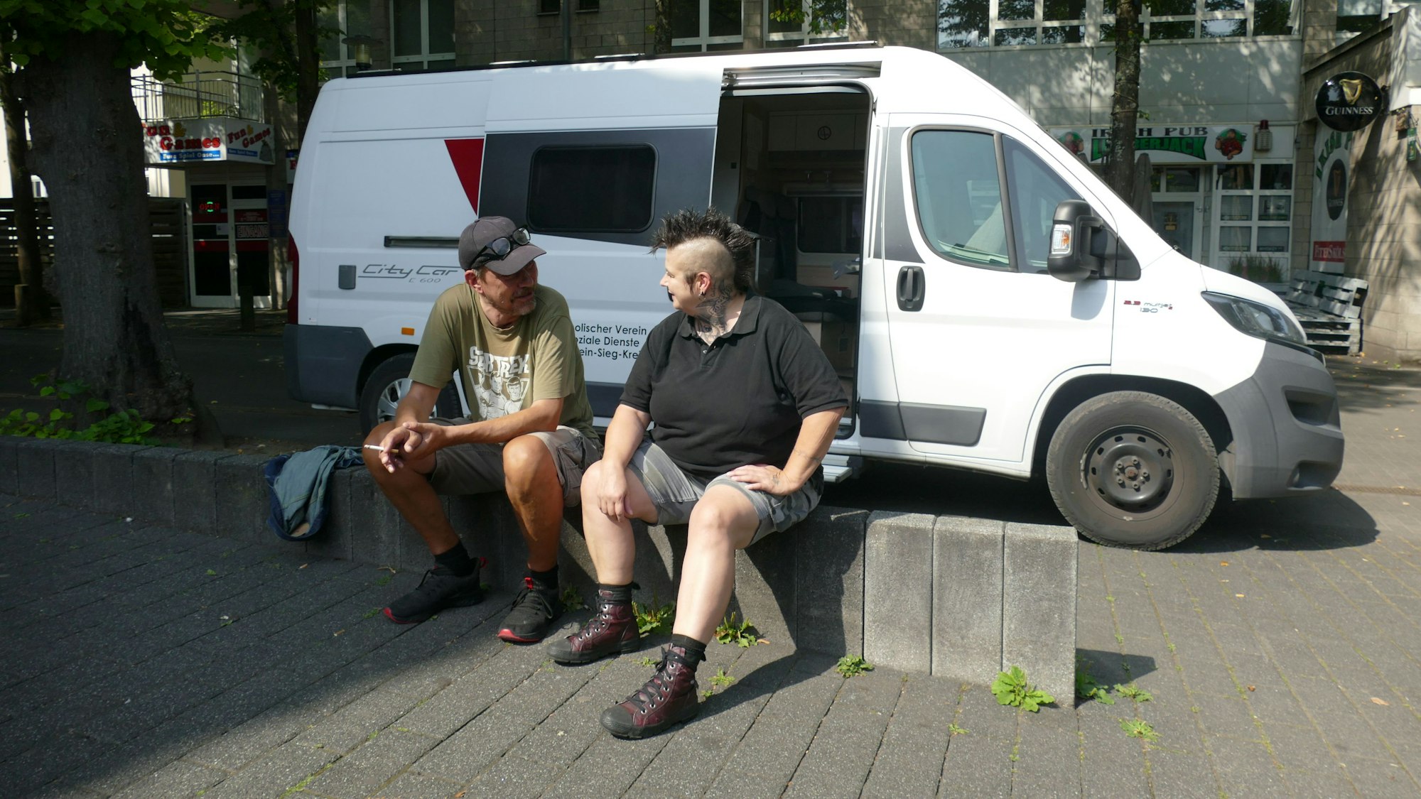 Varressa Lombardi-Boccia ist Streetworkerin beim Sozialdienst Katholischer Männer (SKM) in Siegburg und betreut das ganze Jahr über Menschen, die kein Zuhause haben. Sie leben auf der Straße oder in Notunterkünften. Mehrmals in der Woche steht sie mit ihrem Wohnmobil an bestimmten Plätzen in der Region, um Ansprechpartnerin für die Betroffenen zu sein – denn die benötigen während Hitzewellen besonders viel Unterstützung.