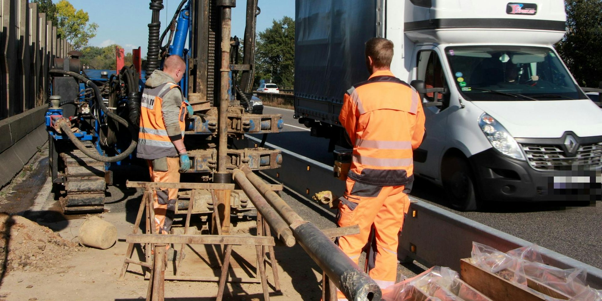 Bohrungen an der A 59Vorbereitungen für vierte Spur bei Sankt Augustin laufen