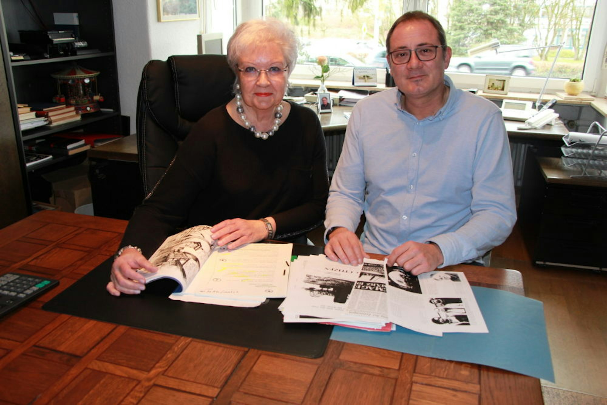 Christel und Patrick Busch beim Blättern in der Chronik über die Ereignisse, die Karl Busch zusammengestellt hatte.