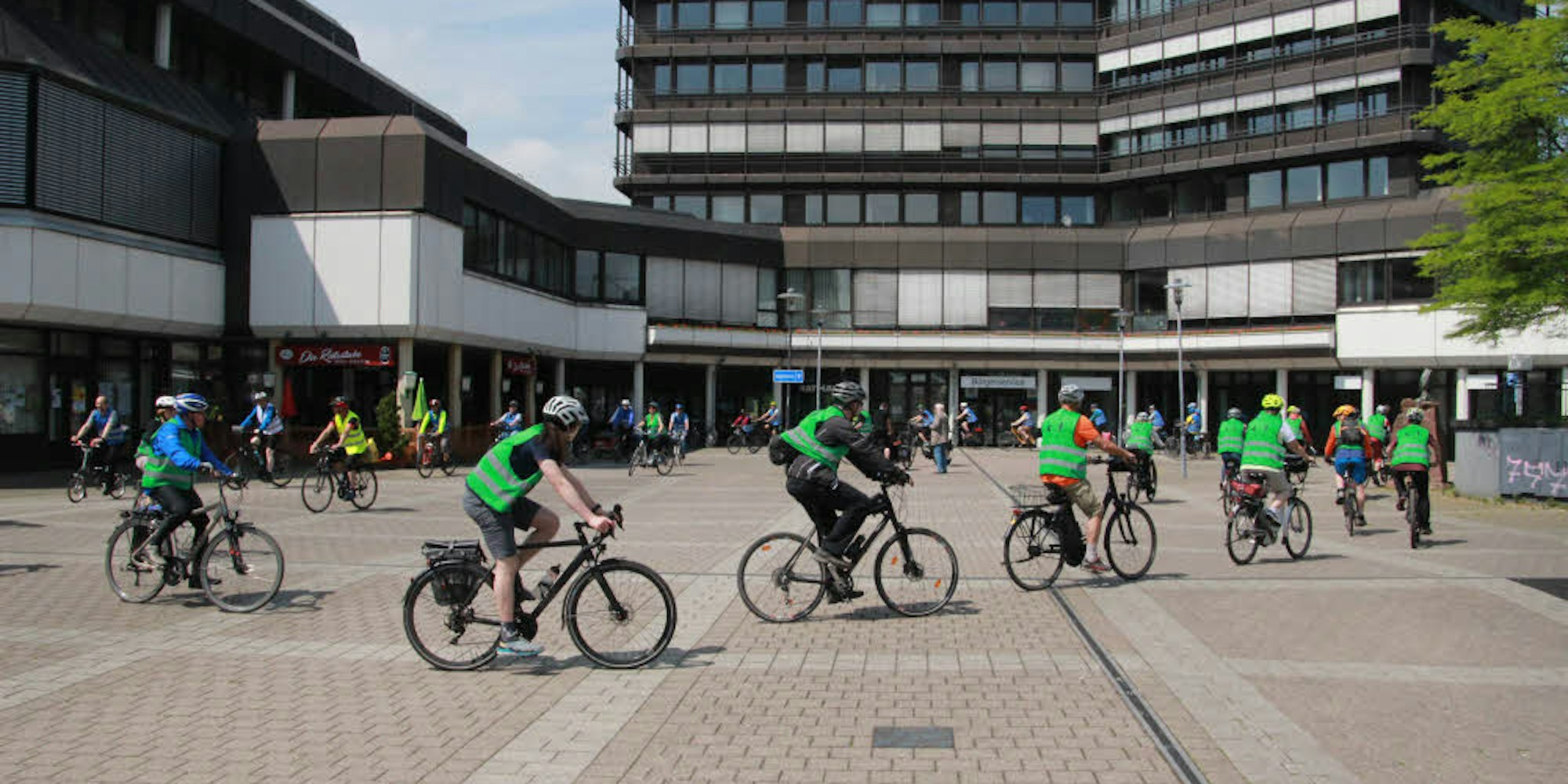 Sankt Augustin – Klingeling, die Radler erobern die Innenstadt. Citybike, Trekkingrad, Lastenrad oder Liegewagen: Vor dem Rathaus in Sankt Augustin kam so ziemlich alles zusammen, was Räder und Pedalen hat. Der große Freiplatz war ein Treffpunkt bei der großen Sternfahrt, mit der die Aktion „Stadtradeln“ eingeläutet wurde.