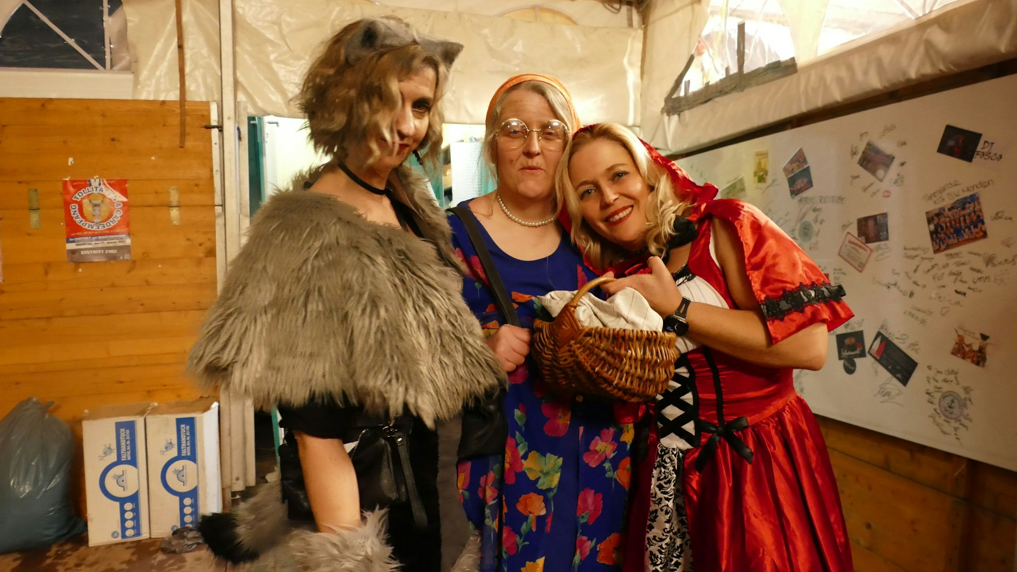 „Wir gehen seit 15 Jahren immer zusammen los, im vorigen Jahr waren wir Putzfrauen“, sagen die drei. „Im Verein müssen wir immer Uniform tragen, es ist super, sich so ausleben zu können.“ Doch nur zu dritt fielen sie als Rotkäppchen, Großmutter und Wolf auf. „Wir können es auch nur drinnen tragen, draußen ist es zu kalt“, sagt Caro Günther.