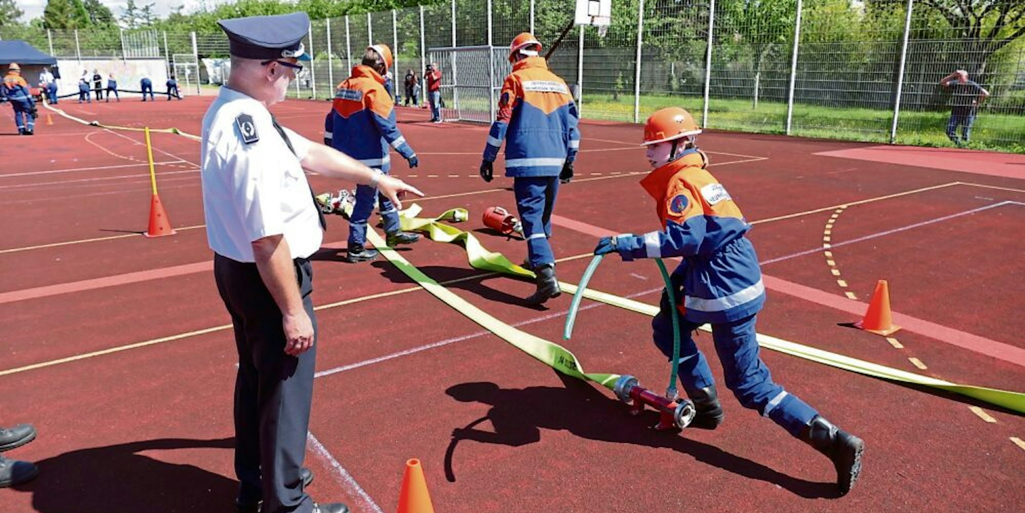 Sankt Augustin – „C-Rohr Wasser Marsch!“, brüllt der Angriffstrupp der Feuerwehrfrau am Schlauchverteiler entgegen. Die dreht an den Verschlüssen, dann bemerken alle Mitglieder der Lohmarer Jugendfeuerwehr verdutzt ihr Malheur: Der C-Schlauch ist gar nicht angeschlossen. Würde die Pumpe tatsächlich Wasser fördern, hätte dieses nun den Sportplatz in Niederpleis geflutet. Doch zum Glück brennt es nicht wirklich, das angenommene Feuer ist nur Teil einer Übung, die die Jugendfeuerwehren des Rhein-Sieg-Kreises am Samstag zu absolvieren hatten.