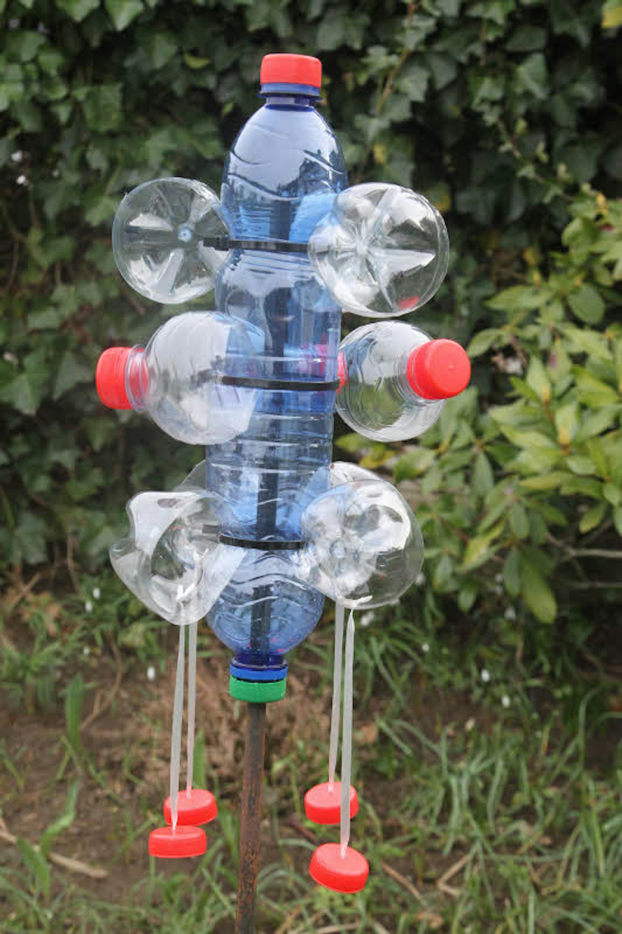 Ein drehbares Objekt aus transparenten Plastikflaschen