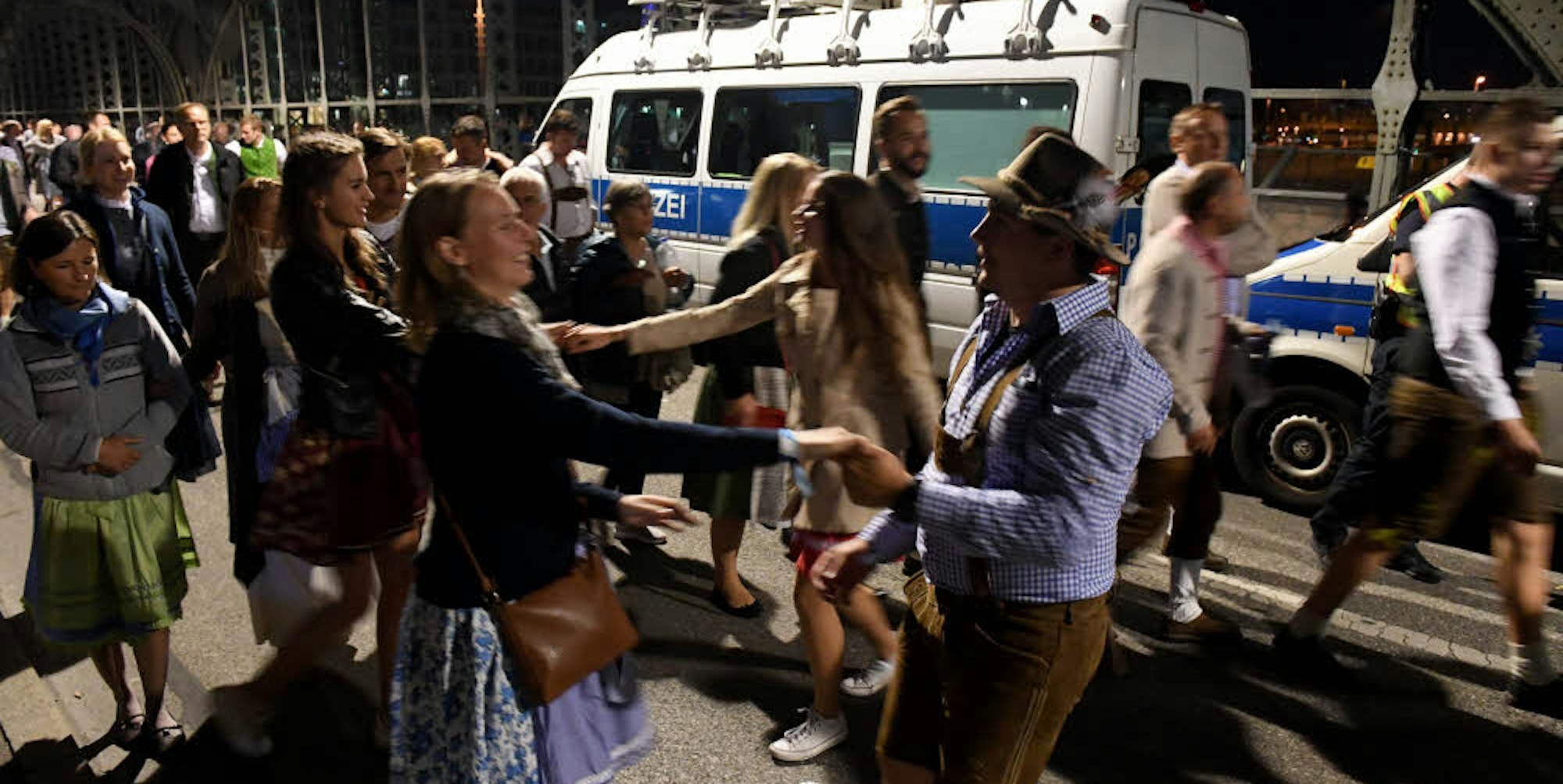Es war ein tolles Bild, das die drei Männer und zwei Frauen zweieinhalb Wochen von 13 Uhr bis 2 Uhr nachts vor Augen hatten: Auf der Hackerbrücke war der Transporter mit der Aufschrift „Polizei“ und einer Armada von Lautsprechern auf dem Dach umringt von Menschen in Dirndl und Lederhosen, die sich zu aktuellen und zeitlosen Songs wie „Cordula Grün“ und „Atemlos“ in den Armen lagen.