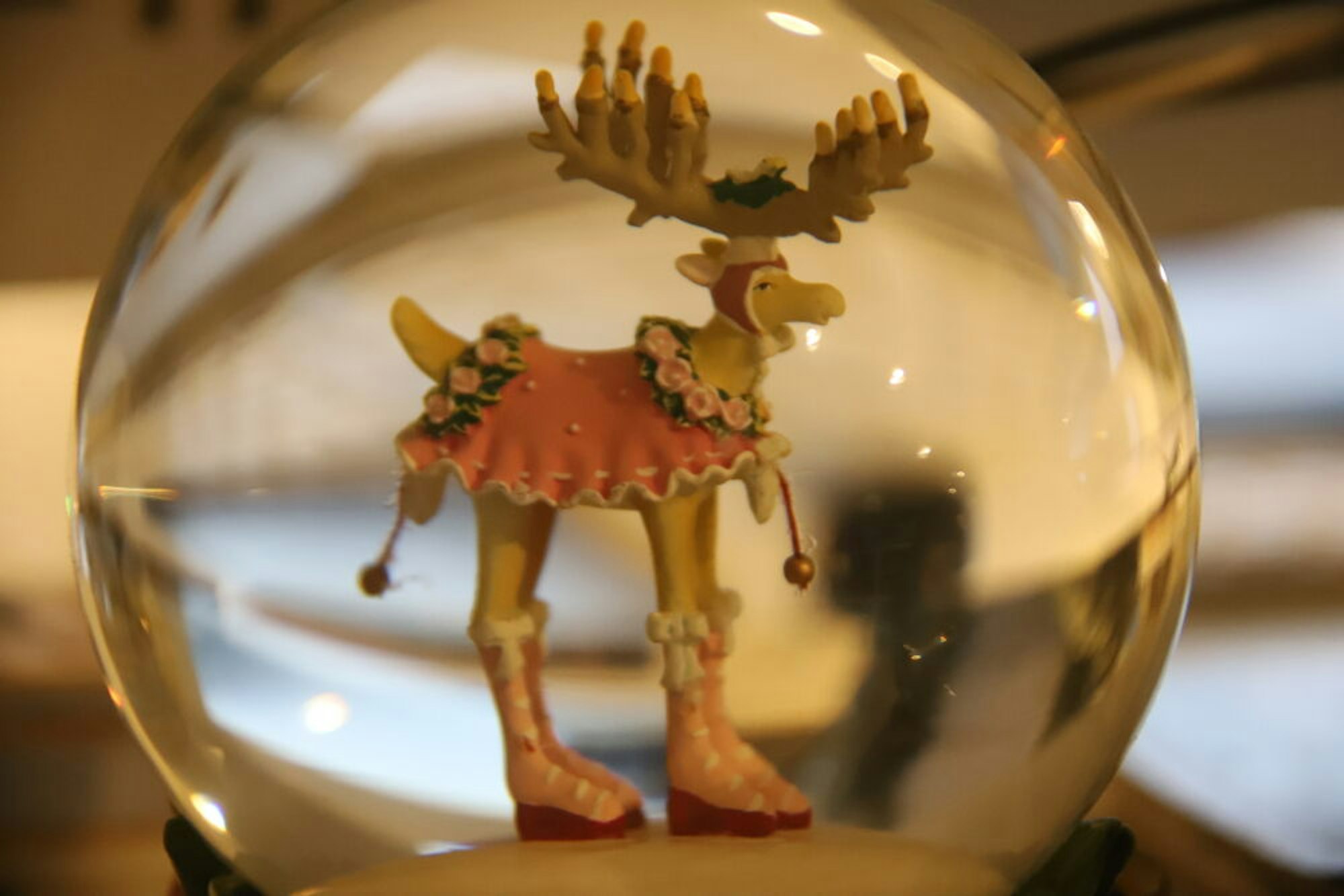 Der Elch in der Glaskugel steht auf dem Schreibtisch der Künstlerin und begrüßt die Gäste in ihrem Arbeitszimmer.