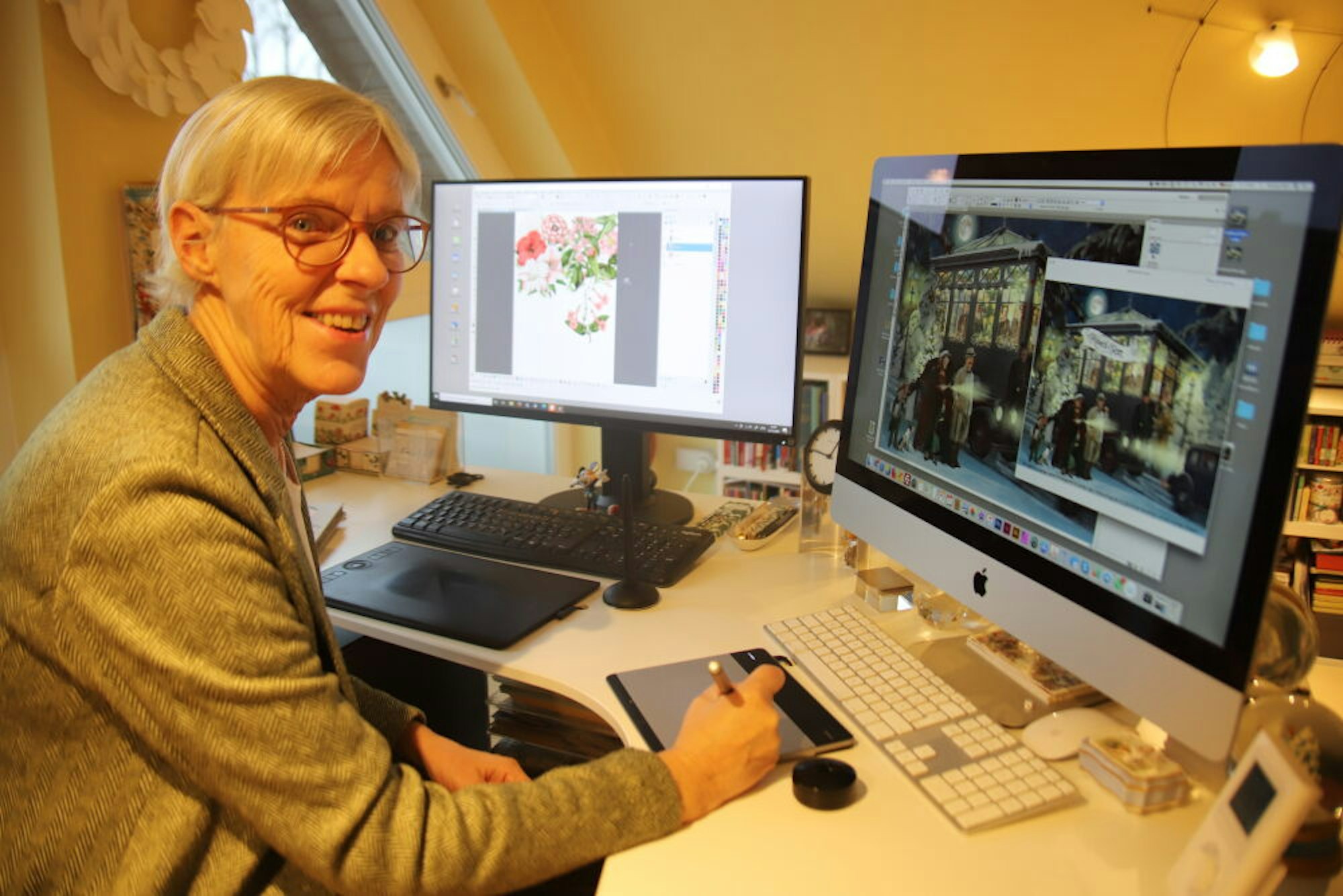 An ihrem Arbeitsplatz im heimischen Büro entwirft Barbara Behr die Motive für ihre zahlreichen Aufträge.