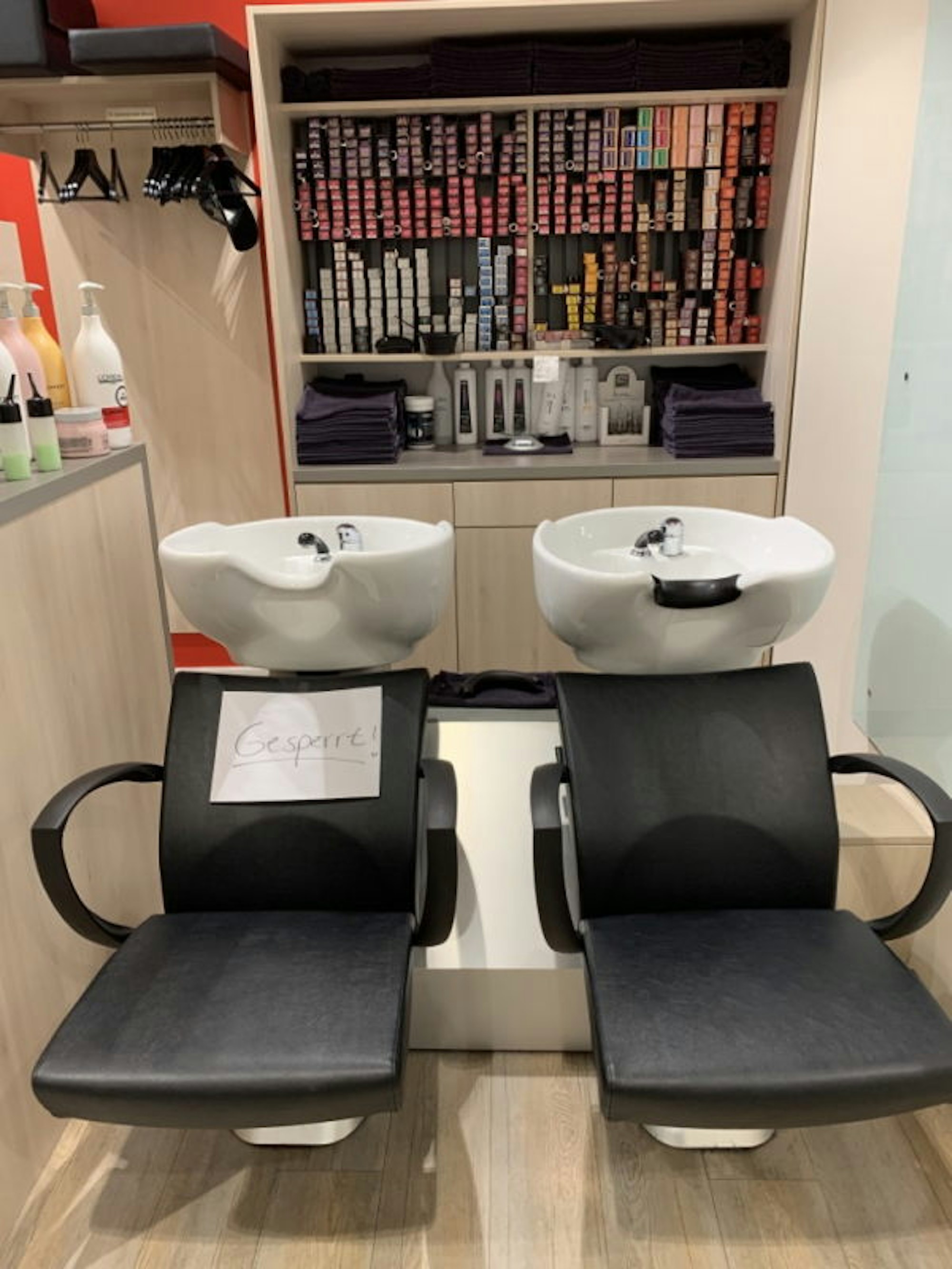 Auf Abstand wird auch beim Friseur geachtet, nebeneinander sitzen ist nicht mehr möglich.