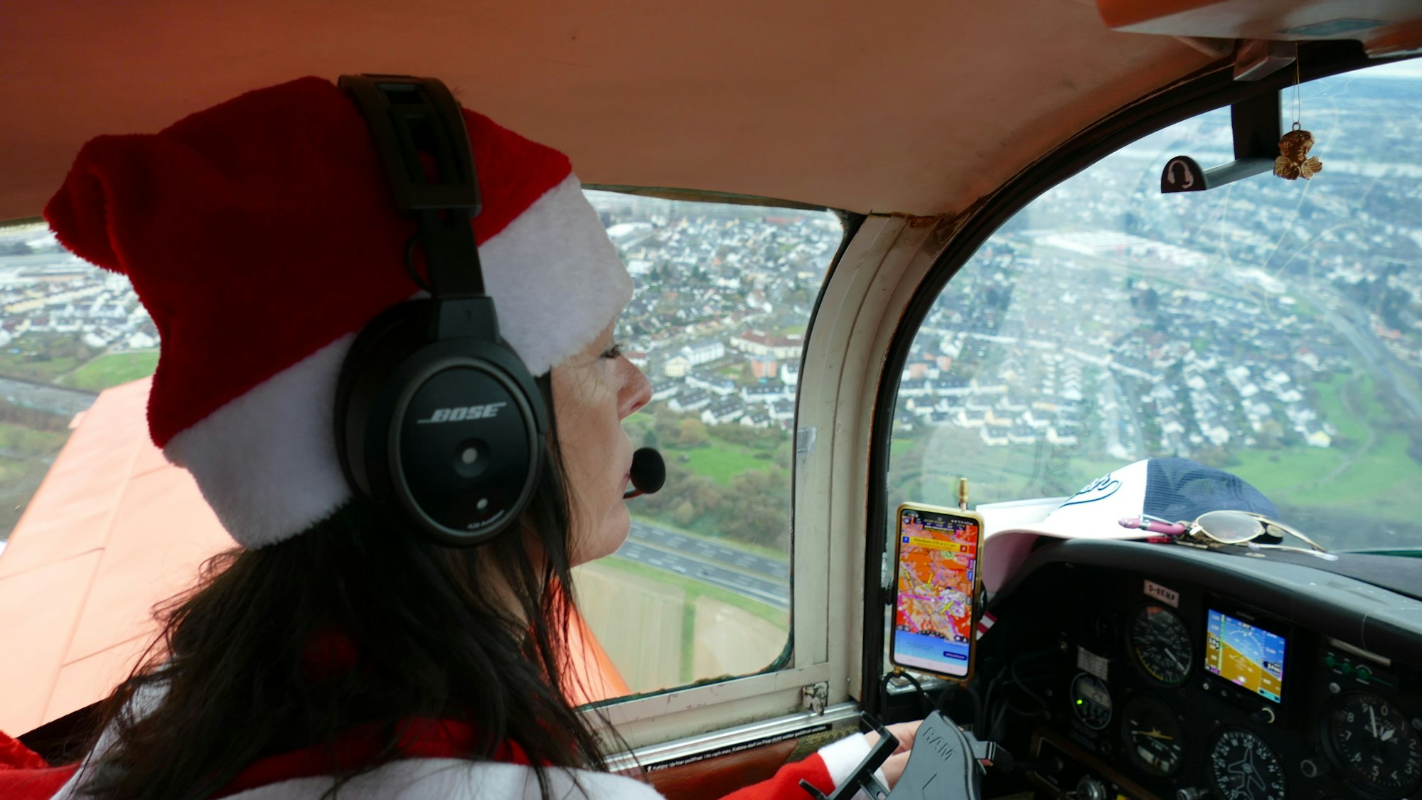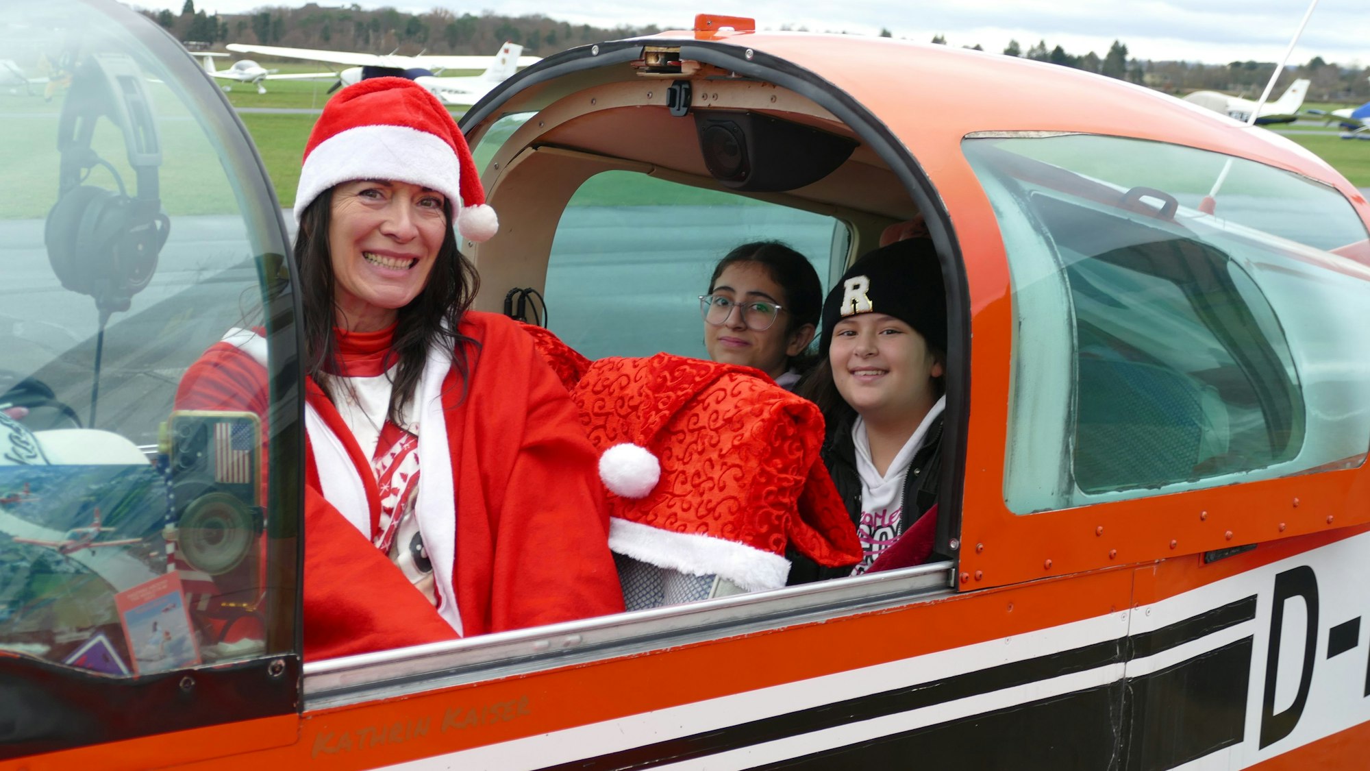 Sie habe eine Schule in Bad Godesberg kontaktiert, deren Lehrerinnen und Lehrer rund 20 Kinder für den Rundflug auswählten. „Ich habe ein paar Freunde gefragt, ob sie ebenfalls mitmachen, vom Flugplatz bekommen wir ein paar Liter Sprit gesponsert. So können wir den Kindern eine Freude machen“, sagt Kaiser, die passenderweise ein Nikolaus-Kostüm trägt. Zwei Mal heben die vier kleinen Maschinen ab, um alle Gäste in die Luft zu befördern.