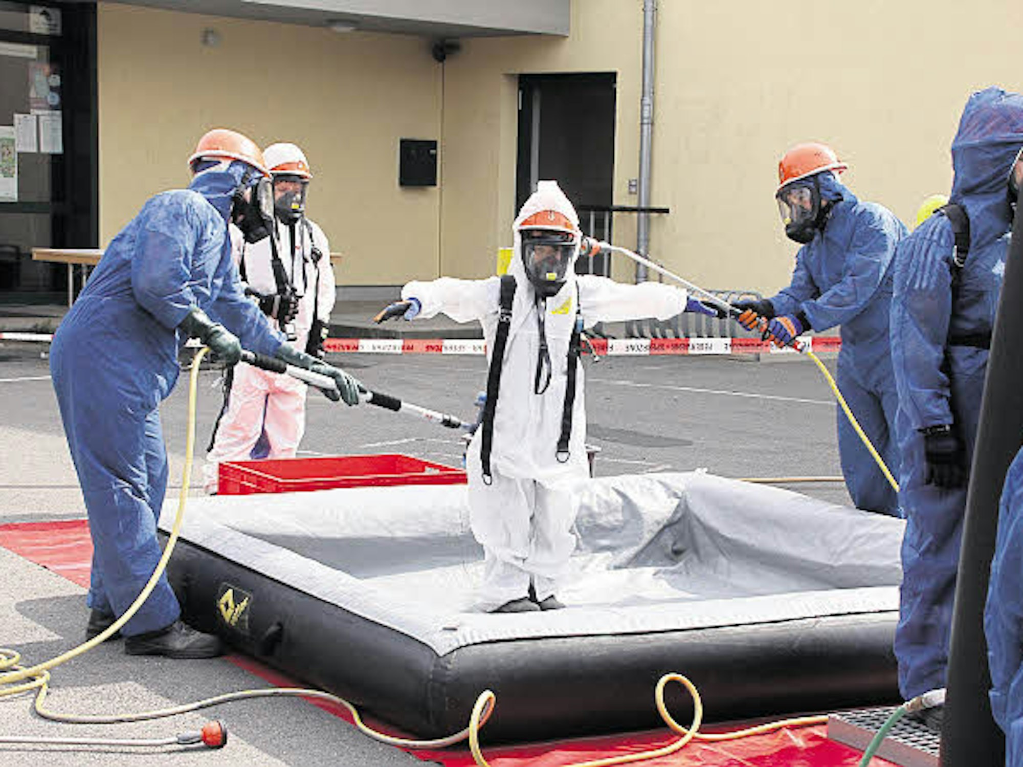In Spezialanzüge gekleidet gingen die jungen Feuerwehrleute in die Übung, ein Chemieunfall wurde simuliert.