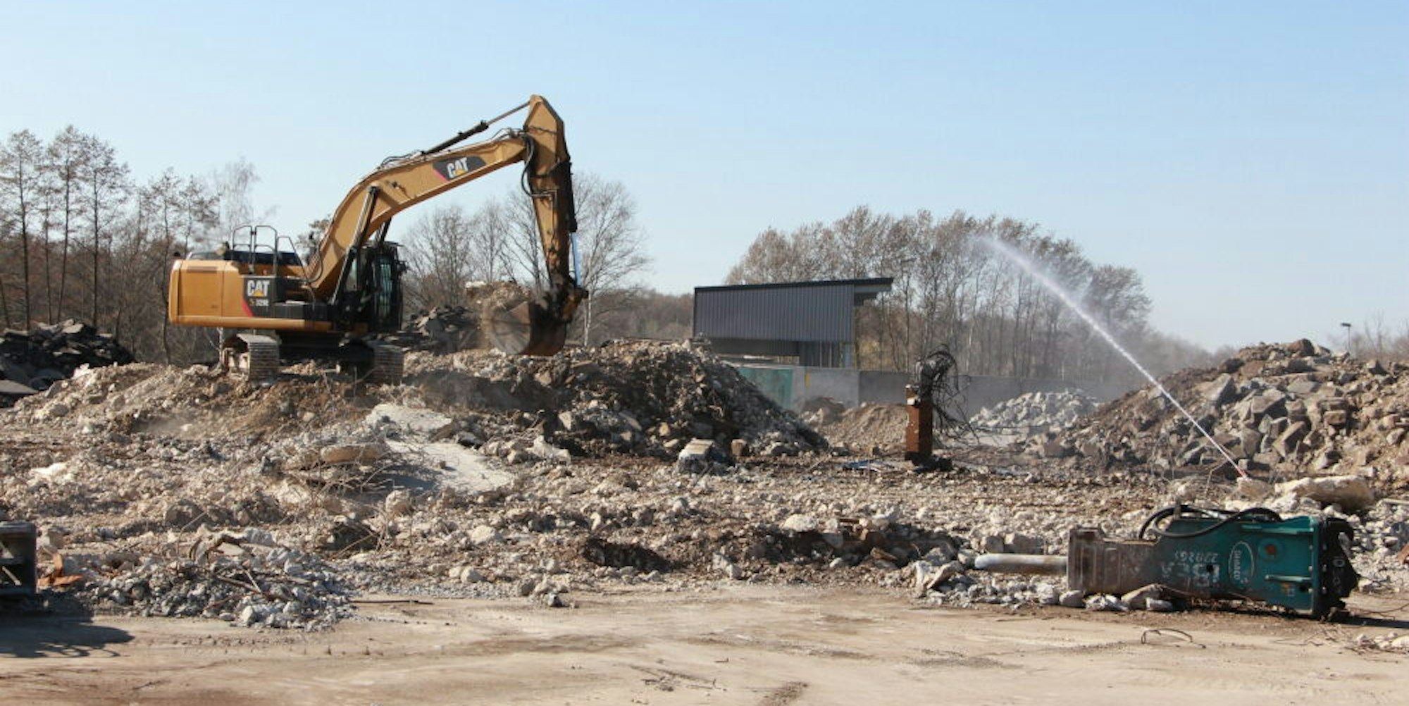 Sankt Augustin – Auch Kleinkram braucht seine Zeit. Ein Bagger sammelt mit seiner riesigen Schaufel sorgfältig Steinbrocken für Steinbrocken auf und türmt die Ladung zum Abtransport auf einen großen Haufen. Die Kompostierungsanlage auf dem Gelände der Rhein-Sieg-Abfallgesellschaft (RSAG) ist verschwunden.Nur eine vergessene Stützsäule erinnert wie ein ägyptischer Obelisk an den mächtigen Bau. Der Abriss war nötig, damit auf dem Gelände des Kompostwerkes am Entsorgungs- und Verwertungspark (EVP) in Sankt Augustin-Niederpleis in den nächsten zwei Jahren eine hochmoderne Biovergärungsanlage entstehen kann.