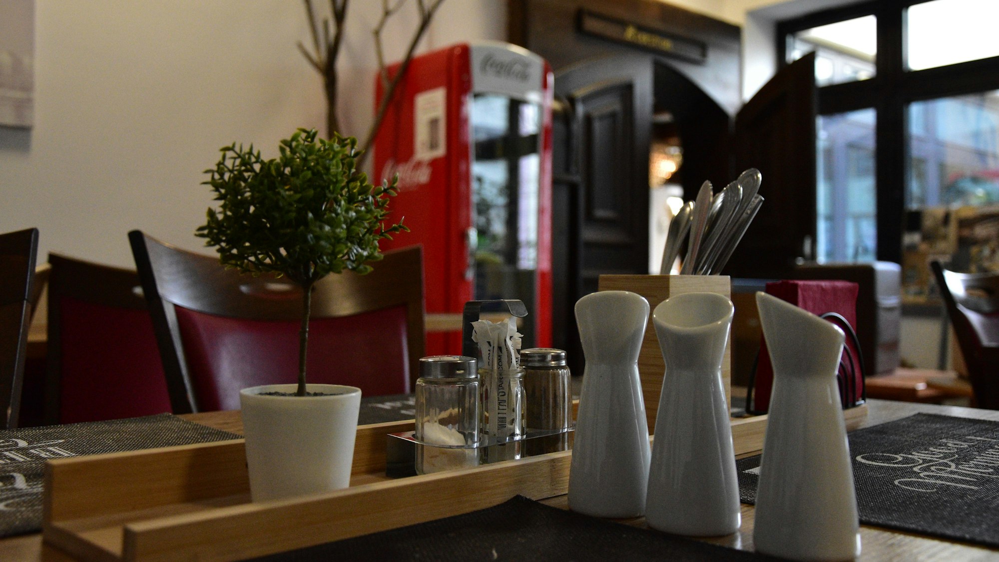 Der Frühstücksraum ist schon vorbereitet. Ein Restaurant fehlt noch.