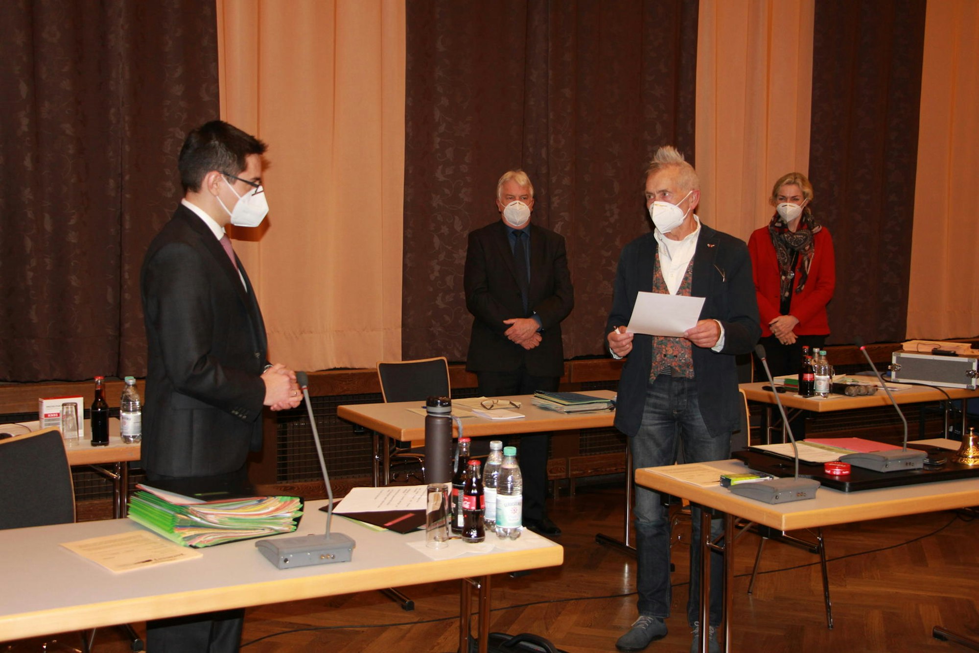 Im Mantel in der Sitzung: Gut gelüftet wegen Corona und daher recht kalt war der Saal während der Sitzung des Rates.