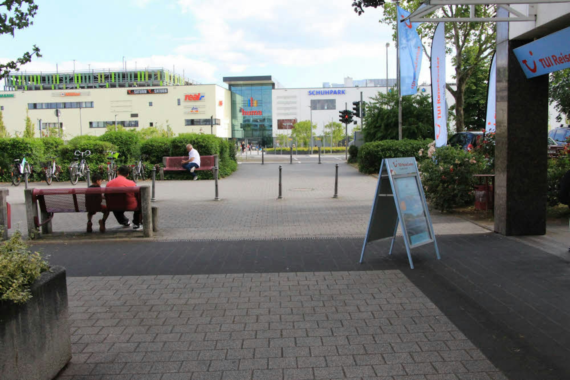 Der Sichtkontakt zum benachbarten Huma-Markt könnte verbessert werden. Derzeit steht noch ein Beet mit Büschen im Weg.