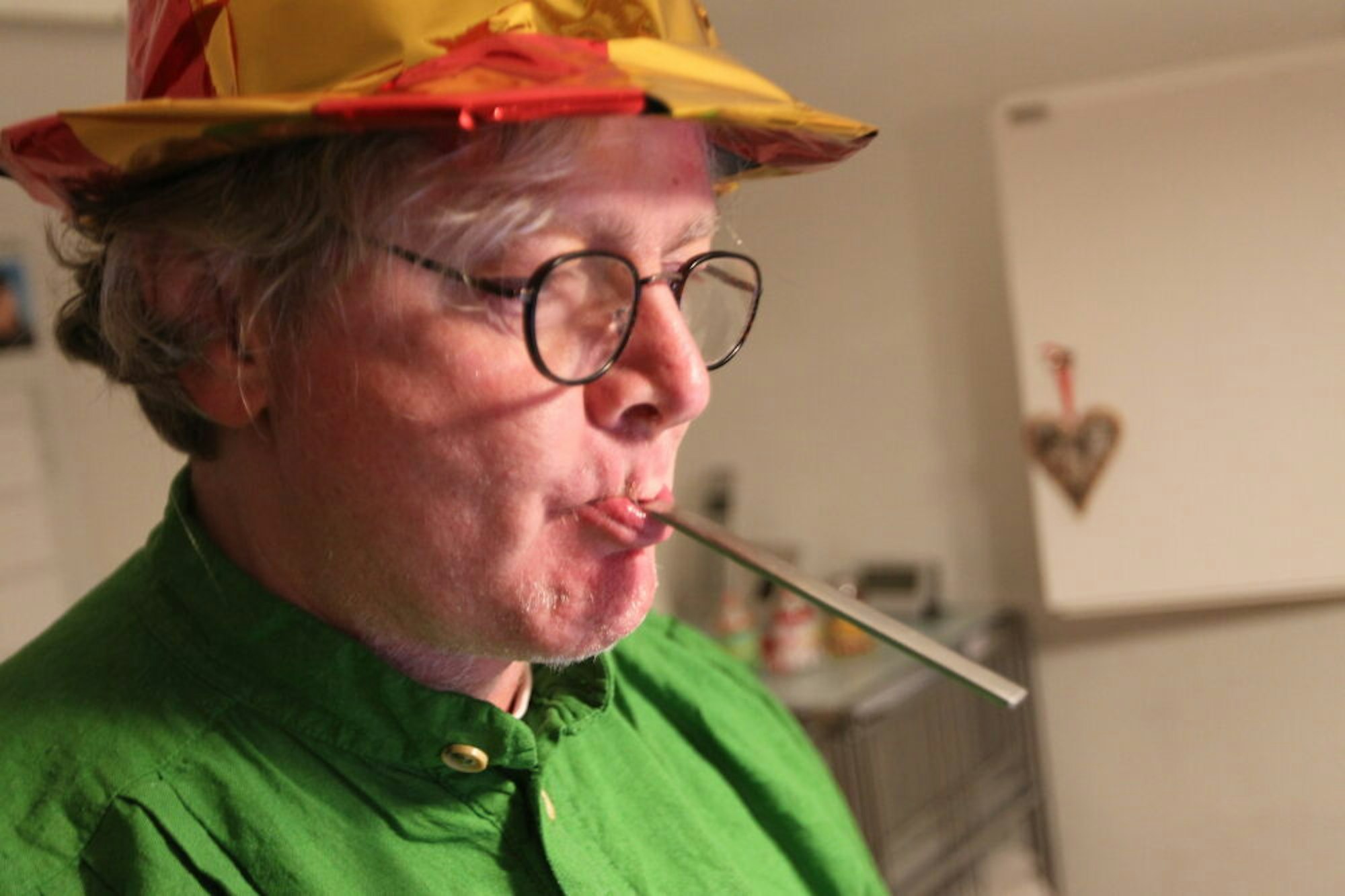 Ausstaffiert mit spitzem Hut für die Mitmachshow: Wie Redakteur Klaus Heuschötter verfolgten in ganz Deutschland Zuschauer den Live-Stream aus Sankt Augustin.