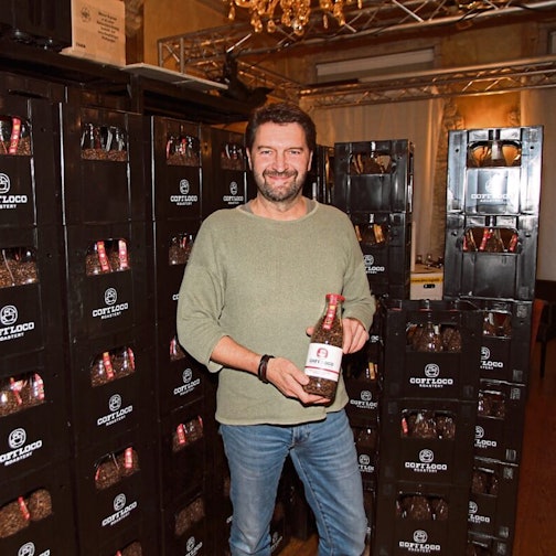 Auf der Anuga präsentierte Uwe Prommer die neuen Flaschen: aus dunklem Glas und mit neuem Aromasiegel.