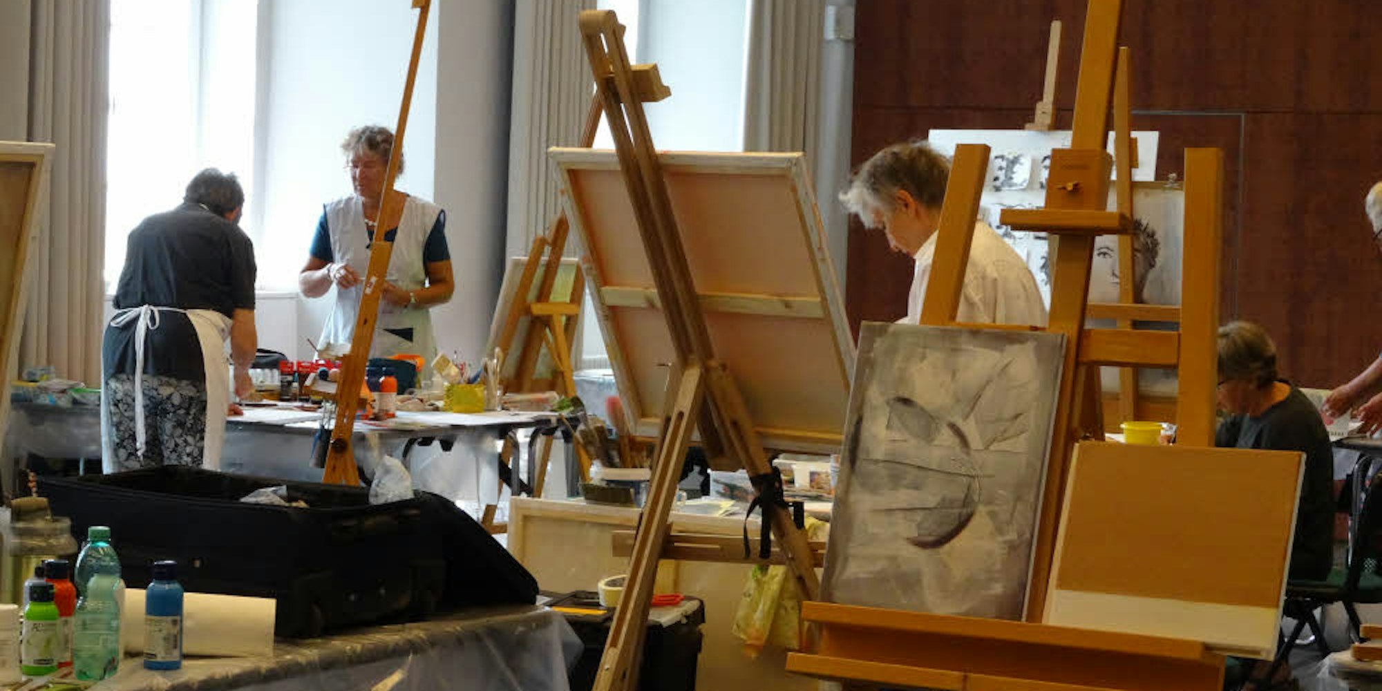 Den Blick über die eigene Staffelei hinaus empfiehlt auch Franziskus Wendels. „Lasst euch von den anderen inspirieren“, rät er. Die kreative Gemeinschaft, die Gespräche bei den Mahlzeiten und in den Pausen seien auch eine gute Medizin gegen die Einsamkeit, der jeder Künstler ausgesetzt ist. Weniger wohl ein Musiker, der das Privileg hat, in einer Jazzband zu spielen – wie Wendels. Als Saxofonist wird er beim Abschlussfest mit seiner Band auftreten.