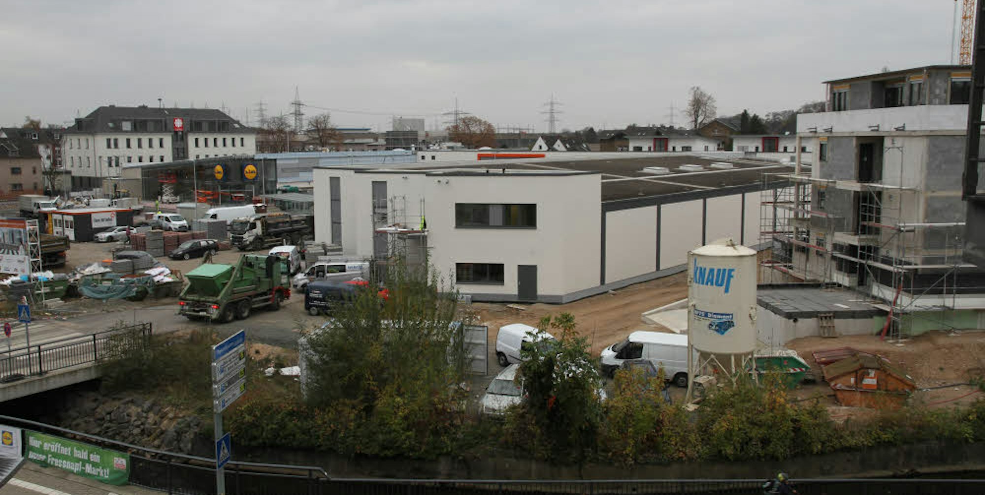 Siegburg – Schwere Baumaschinen befördern Asphalt an Ort und Stelle, Parkbuchten werden gepflastert, Fassaden verputzt, kurz, das Fachmarktzentrum im neuen Mühlengrabenquartier ist mächtig im Werden. Große Logos von Lidl und DM verraten schon die Betreiber der einzelnen Gebäudeteile, und sogar der Eröffnungstermin steht bereits fest: Am Donnerstag, 29. November, wird Eröffnung gefeiert, und der Plan, in diesem Jahr noch das Weihnachtsgeschäft mitzunehmen, wird aufgehen.