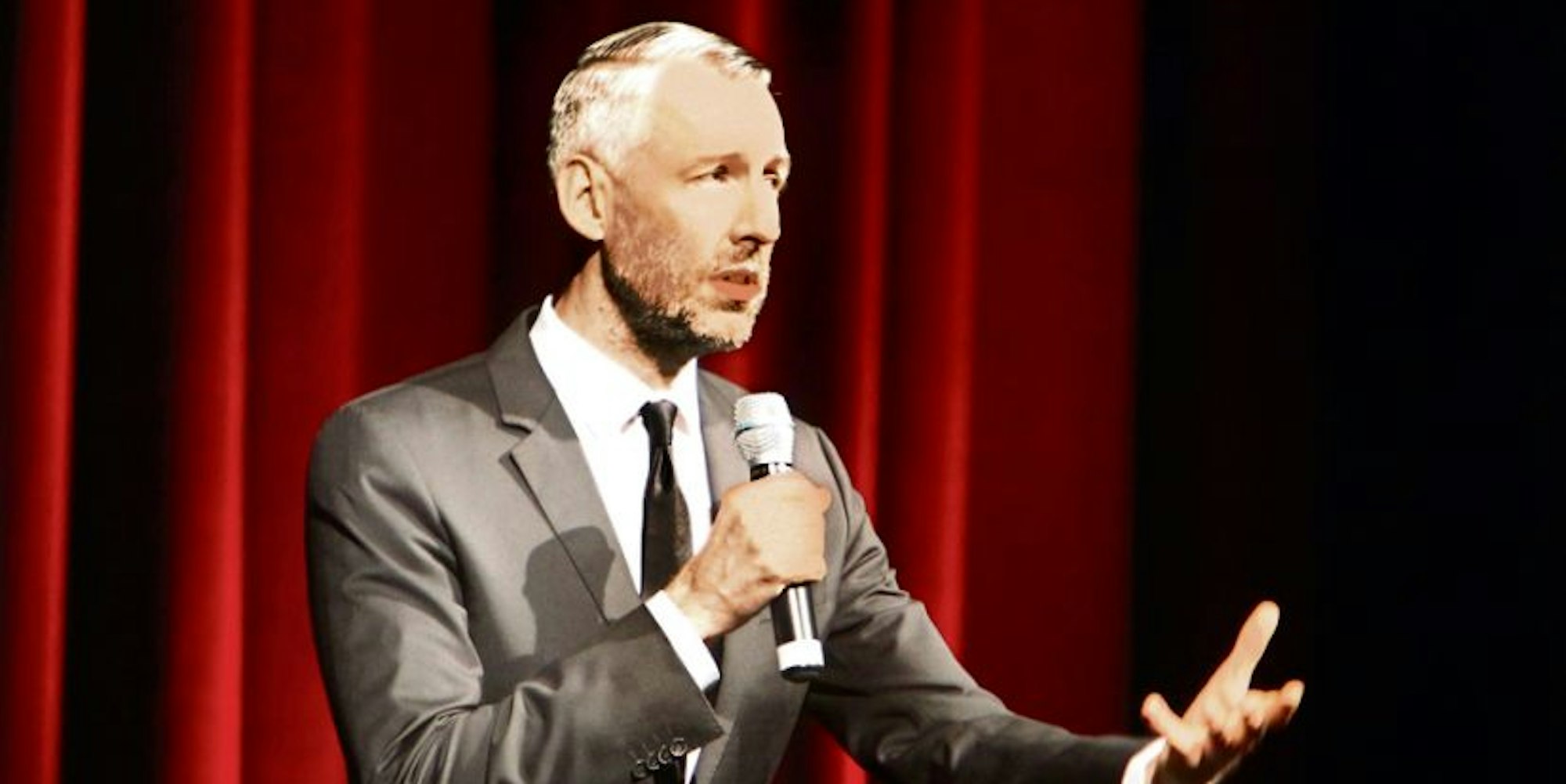 Pufpaff braucht keine Requisiten, ganz allein vor dem roten Bühnensamt wickelt er uns ein in seine Geschichten, treibt die Absurditäten des Alltags auf die Spitze. Das Grillen im Vorgarten ist ein Casting für die Gäste: Wer sich bewährt, wird irgendwann ins Haus geladen, vielleicht. Da treffen sich Menschen, die nur noch über Investitionen in Immobilien sprechen und Globuli-Weisheiten verkünden: „Aus Sand wird Wand wird Wohlstand“. Der Kabarettist lässt riesige Anwesen, „mitten in Siegburg“, vor dem geistigen Auge entstehen, mit Blick bis zu den Alpen und einem Kiesweg, der von Polen gesäumt wird: „Die harken und harken und harken.“ Nur mit dem Pferd ist der weit entfernte Hausbriefkasten erreichbar. Wer sich in dieser Umgebung als Mieter outet, ist raus.