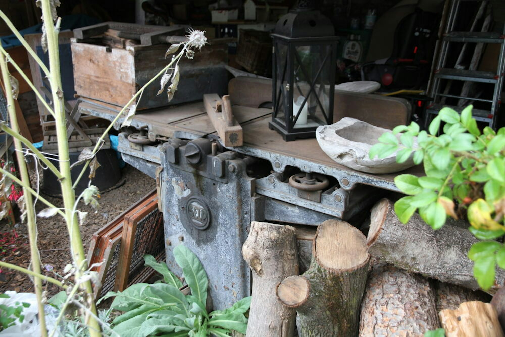 Die Geschichte sieht man in Haus und Hof auf Schritt und Tritt. Im Garten findet sich unter einer Überdachung ein mächtiger alter Langhobel, in dem riesigen, 100 Quadratmeter großen Werkstattraum stehen alte Werkbänke, an der Wand hängt liebevoll gerahmt ein Bild von Wellmann und seiner Frau Anna. Ein paar Handgriffe nur, und man hätte aus der Rosa Aussicht ein Handwerksmuseum gemacht. Nur zwei Gerätschaften hat Clasen entfernt, alles andere behielt sie, Werkzeug, Kleidungsstücke, das Modell einer Wendeltreppe und den schweren Holzhammer, den man braucht, um den Riegel zur Hintertür aufzuschlagen.