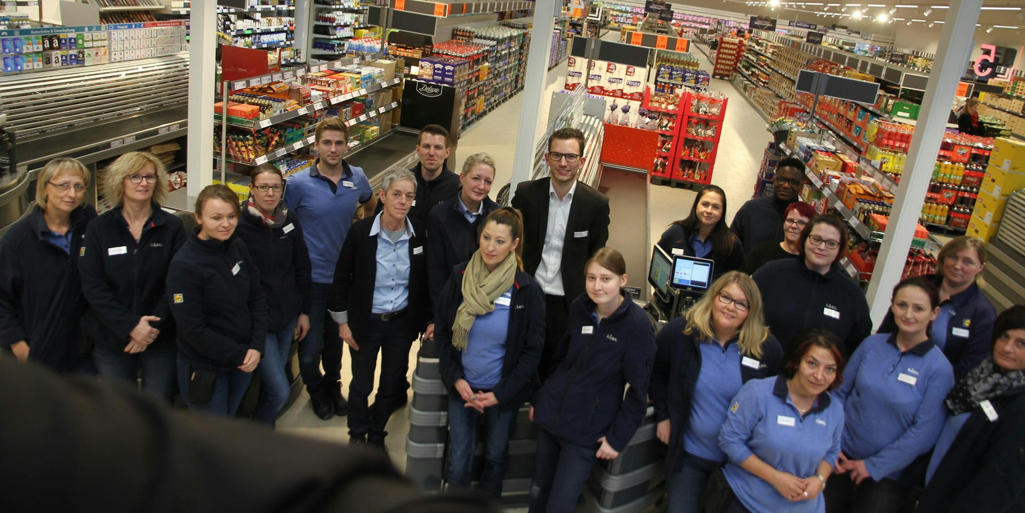 Das Team in der neuen Lidl-Filiale macht sich an die Arbeit. Auf 1300 Quadratmetern finden sich 3500 verschiedene Artikel.