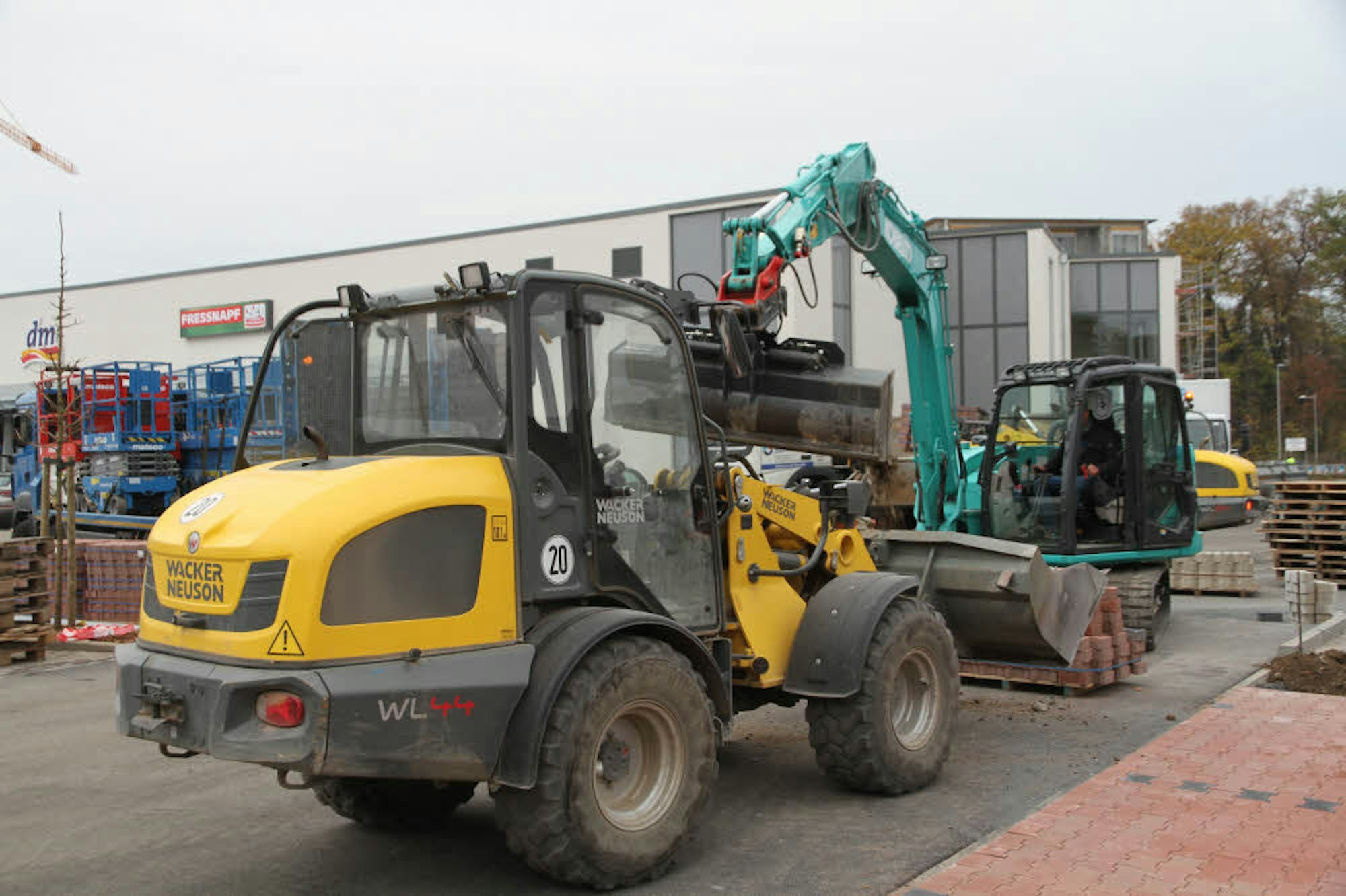 Gestern Nachmittag wurden noch letzte Pflasterarbeiten auf dem neuen Parkplatz des Fachmarktzentrums erledigt.