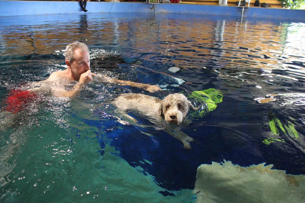 Siegburg – Negro schwimmt gern im Allner See, da tobt er sich richtig aus, planscht und strampelt im tiefen Wasser. Indes übte sich der achtjährige kleine Vierbeiner beim Hundeschwimmen im Tauchturm in Zurückhaltung. Der kleine ungarische Straßenhund bevorzugte einen kleinen Trog neben dem großen Turm, sprang mit einem lässigen Hops hinein und schaute sich auch sonst gelassen um.