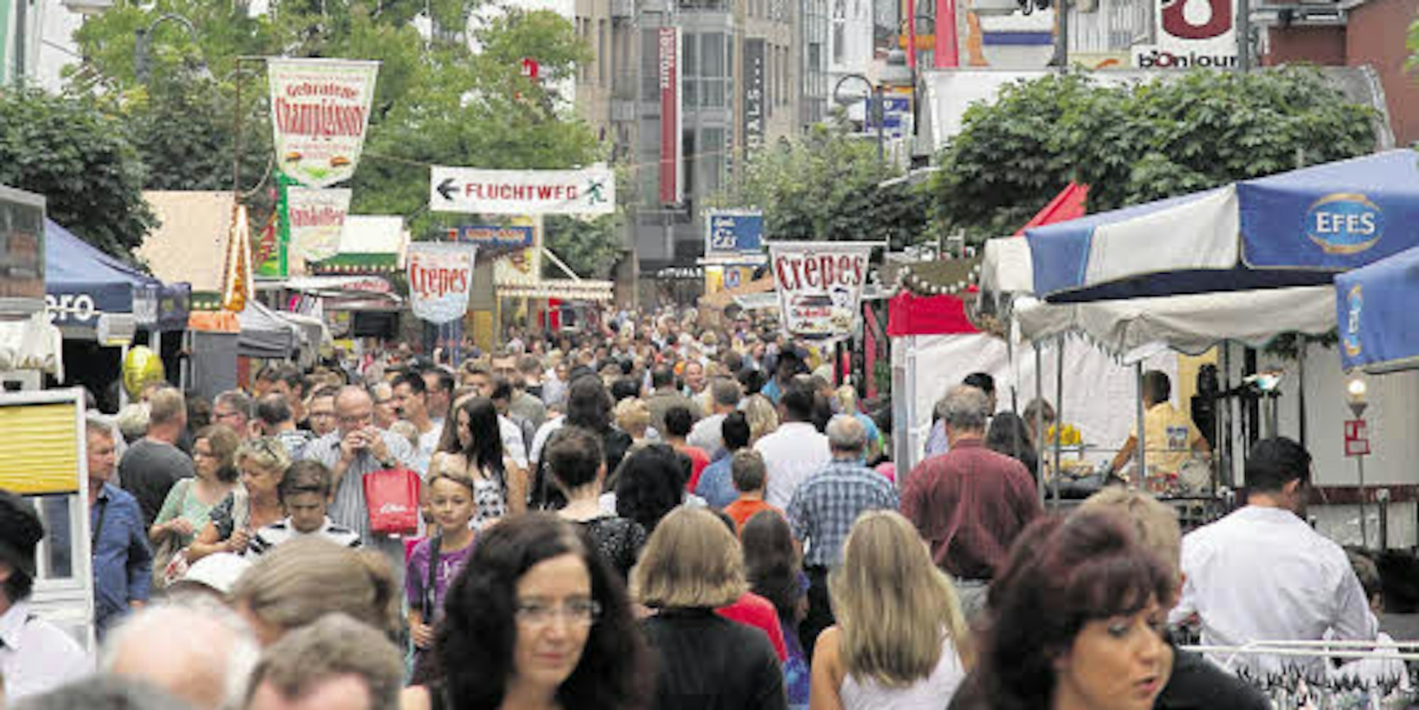 Dem heimischen Brauchtum ist die Grüne Meile Kaiserstraße vorbehalten: Kölsche Tön’ werden von der Bühne erschallen, die Karnevalsvereine freuen sich auf die Besucher. Dreh- und Angelpunkt des Festes unter dem Motto „Drei Tage, zwei Nächte, ein Fest“ wird aber die Goldene Meile sein, der Markt. Hier auf der Hauptbühne dürfte am Sonntag einer der Höhepunkte stattfinden: Die Band Hausmarke, die auch viele Jahre nach ihrer Auflösung noch zahllose Fans in der Kreisstadt hat, wird dort ab 18 Uhr auftreten.
