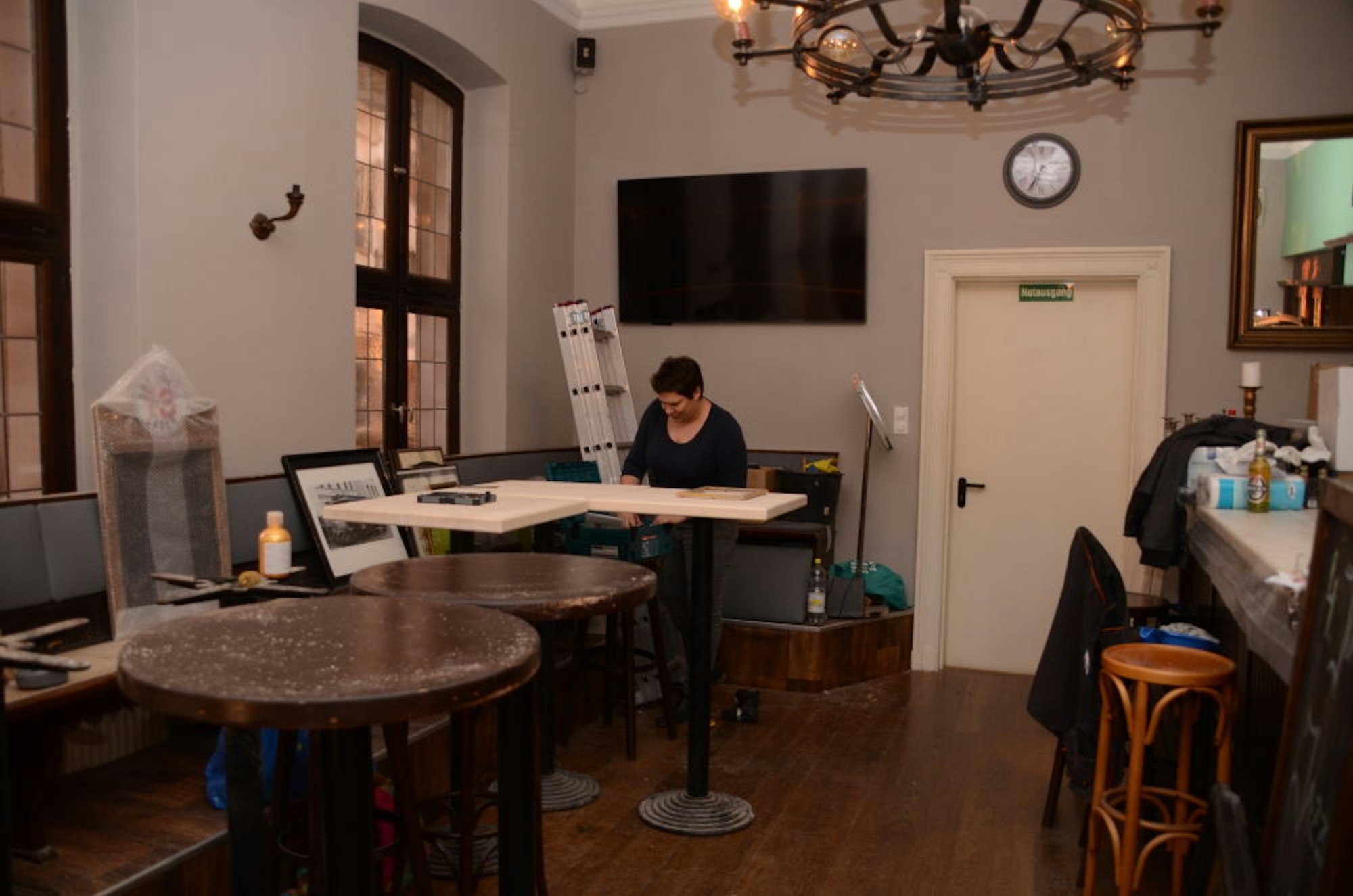 Das Verschwinden des Kachelofens brachte die Lösung. „Der Ofen stand nicht unter Denkmalschutz“, betont der Betriebsleiter; Mitarbeiter der Denkmalbehörde hätten das vor dem Abriss in der Gaststätte begutachtet. Vieles werden Stammgäste wiedererkennen: „Fast das gesamte Mobiliar“ haben Torsten Schulz und Anika Schäfer übernommen, die als Betriebsleiterin in Siegburg arbeiten wird. Zwei festangestellte Kräfte und zwei in Teilzeit werden das Team bilden, Aushilfen kommen hinzu. Im vorderen Raum werden sie an hohen Tischen bedienen, der Nebenraum soll eher Restaurantcharakter haben.