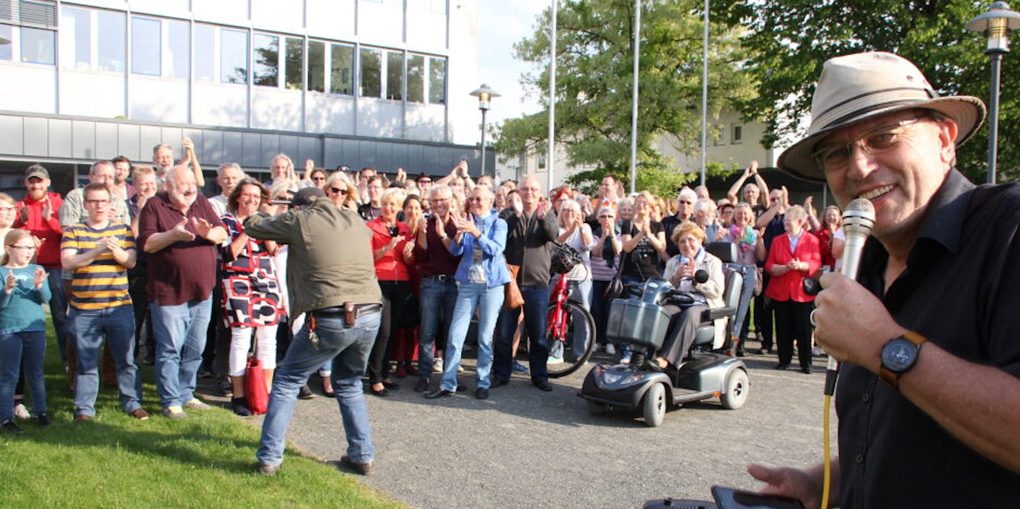 Im Mai 2019 hatte Peter Selbach (r.) die Idee bereits in Lohmar realisiert. Zum Abschluss trafen sich alle Teilnehmer zu einem großen Applaus-Bild.