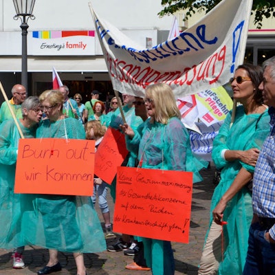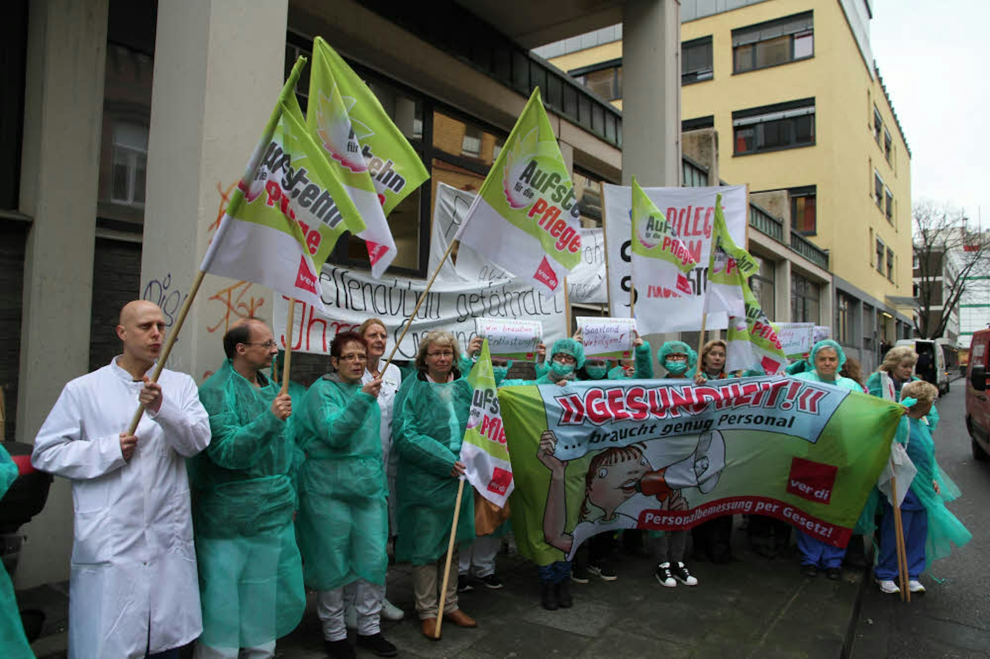 Im Februar 2017 demonstrierten Klinikbeschäftigte in Siegburg für mehr Personal, um Patienten angemessen versorgen zu können.