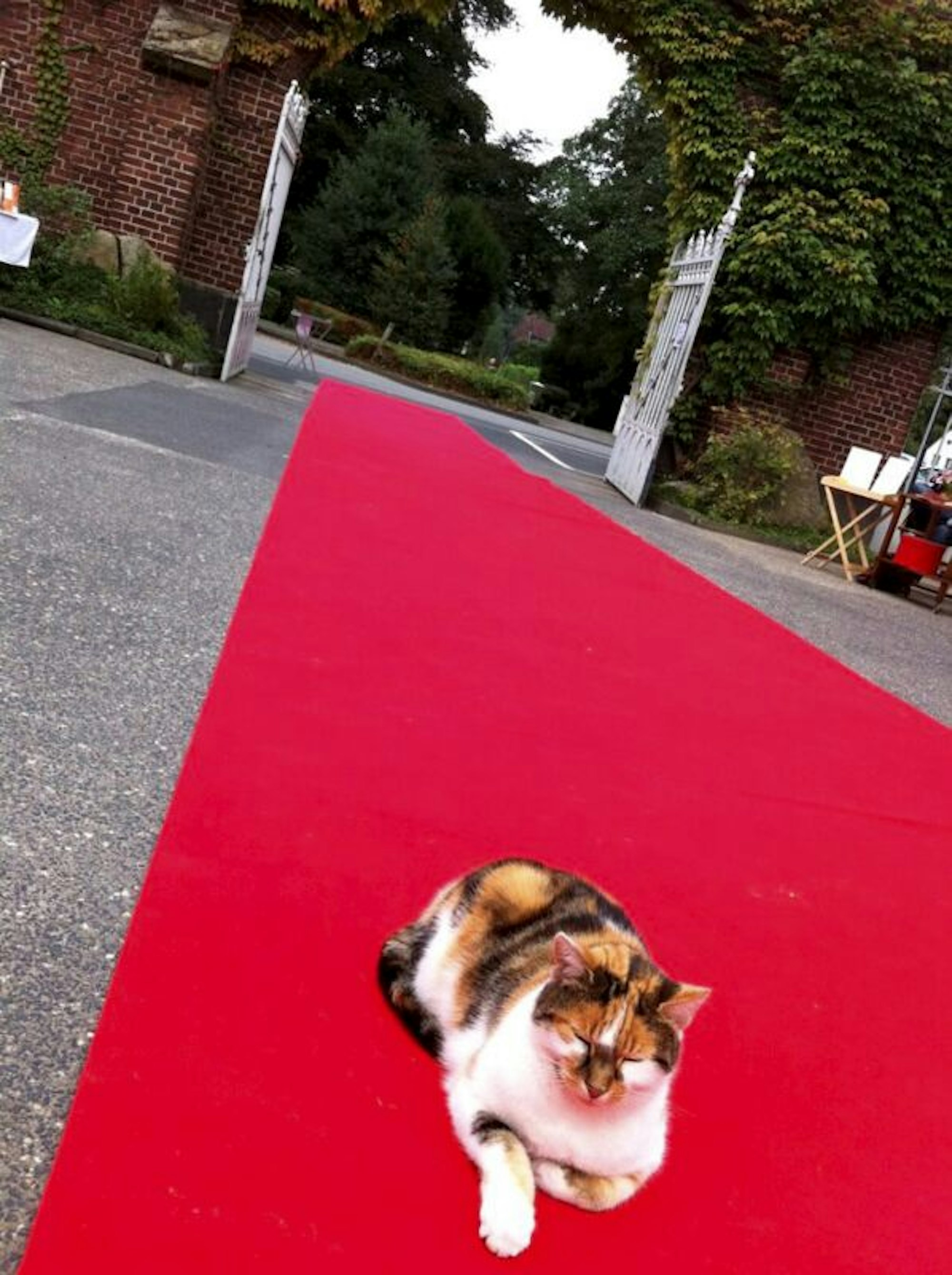 Ein roter Teppich für Jule. Bei einer Veranstaltung auf dem Nordfriedhof legte sie sich dort nieder.