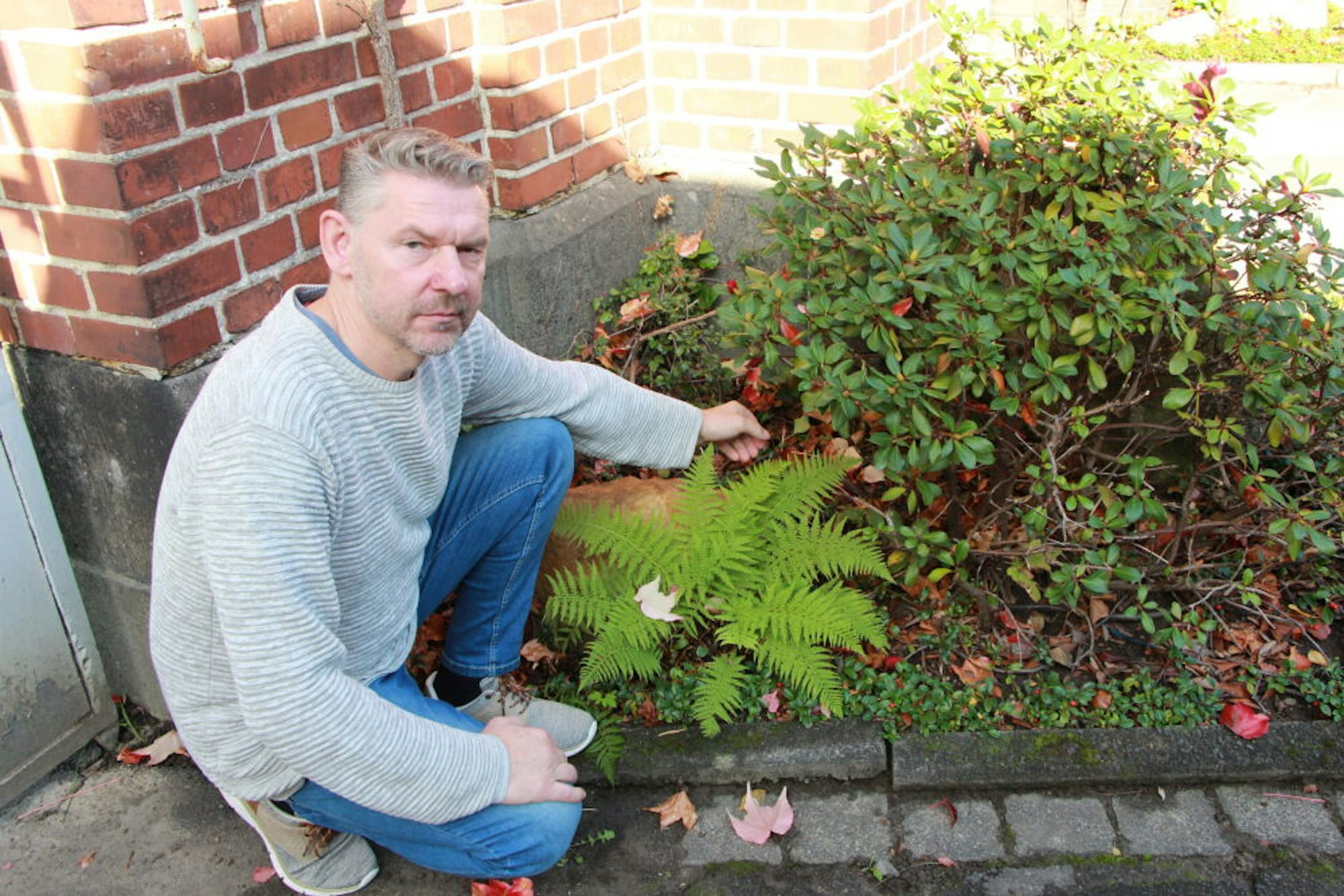 Frank Schubert zeigt einen Lieblingsplatz von Jule am Eingang.