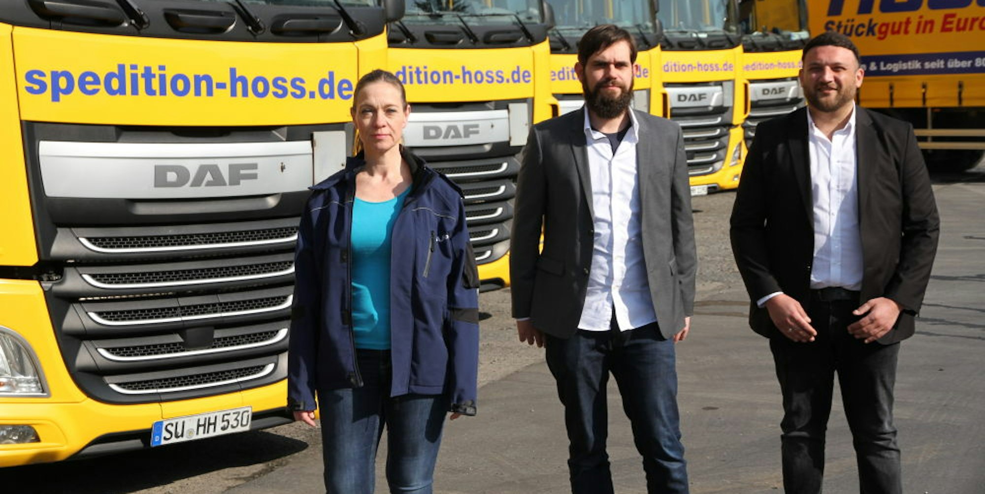 Die Gesellschafter Ariane Hoss, Alexander Hoss und Speditionsleiter Muhammed Türker führen das Familienunternehmen.