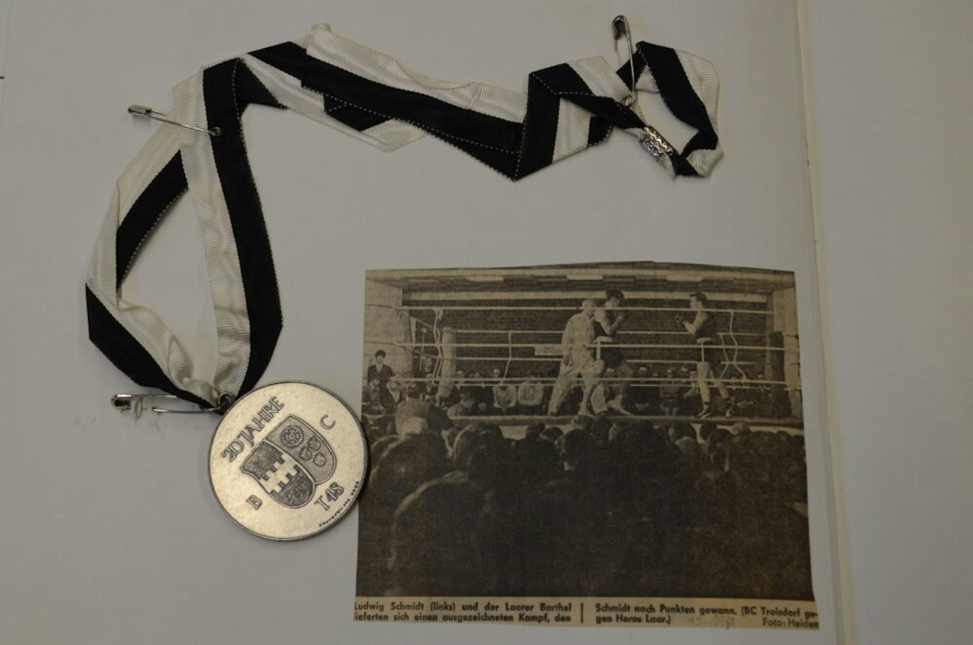 Zwischen den Seiten aus Fotokarton und Pergamentpapier finden sich aber längst nicht nur Fotos und Zeitungsausschnitte. Vielmehr machen auch Urkunden und Wettkampfprotokolle oder Turnierbroschüren das sportliche Leben Morlocks nachvollziehbar. Und sogar Medaillen hat der Sohn in den Alben fixiert: 1957 wurde Dieter Morlock deutscher Jugendmeister in der Bantamklasse.