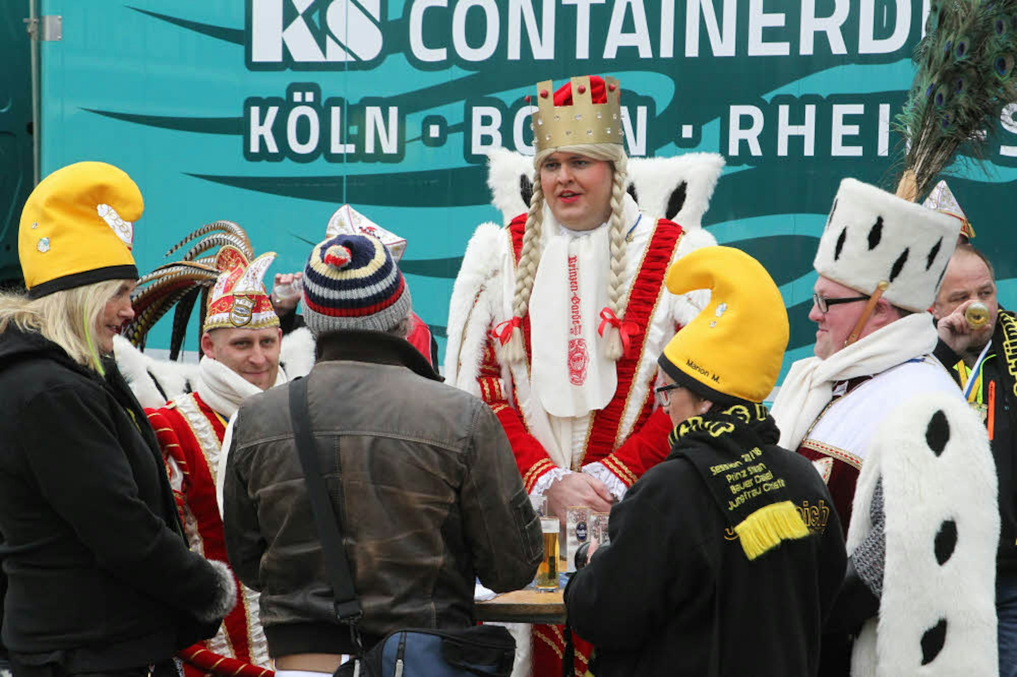Spicher Jungfrau Christin mit 2,18 Meter Spitzenreiter unter den Tollitäten. Allerdings begegnet ihr der Hennefer Prinz fast auf Augenhöhe. Auch Wolfgang IV. (Neuhöfer) ragt mit 2,04 Metern aus jeder Menge heraus. Auch seine Prinzessin Monika V. ist mit 1,86 Meter nicht die Kleinste. Aber es geht auch noch größer. In Bonn sah Jungfrau Christin zum Stadtsoldaten Rolf „Bibo“ Mayr auf. Der frühere Basketball-Nationalspieler misst 2,22 Meter. (kh)
