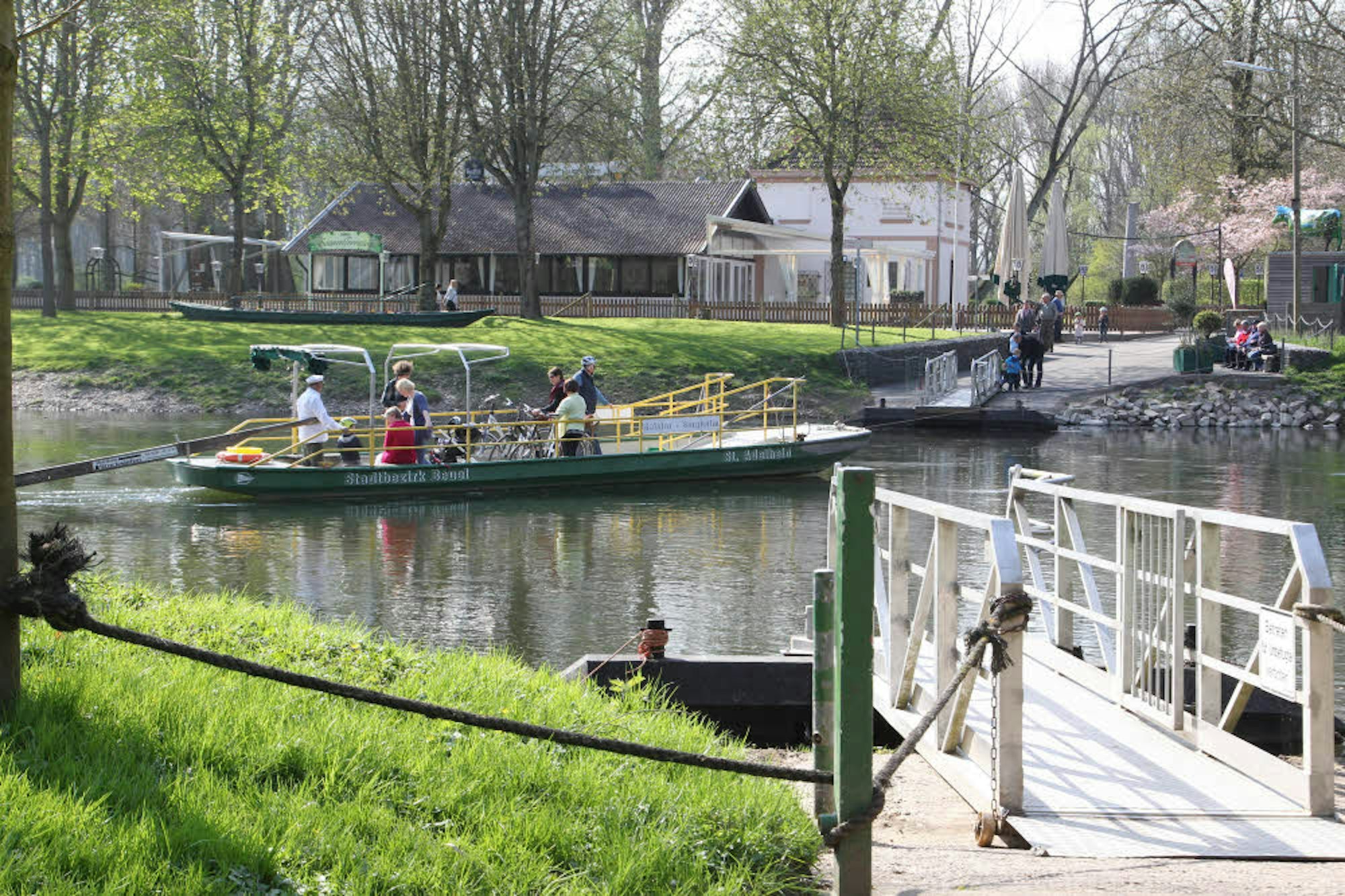 Wer sich stärken möchte, hat vor der Überfahrt gute Gelegenheit im Ausflugslokal: Mit vollem Magen seekrank zu werden, muss angesichts des hier meist träge strömenden Wassers niemand befürchten. Für alle anderen und für die Montage mit schlechtem Wetter gibt es zudem eine Brücke. Angekommen auf Bonner Stadtgebiet, wendet sich der Radfahrer oben auf dem Damm nach links, folgt den Schildern, die nach Meindorf weisen.