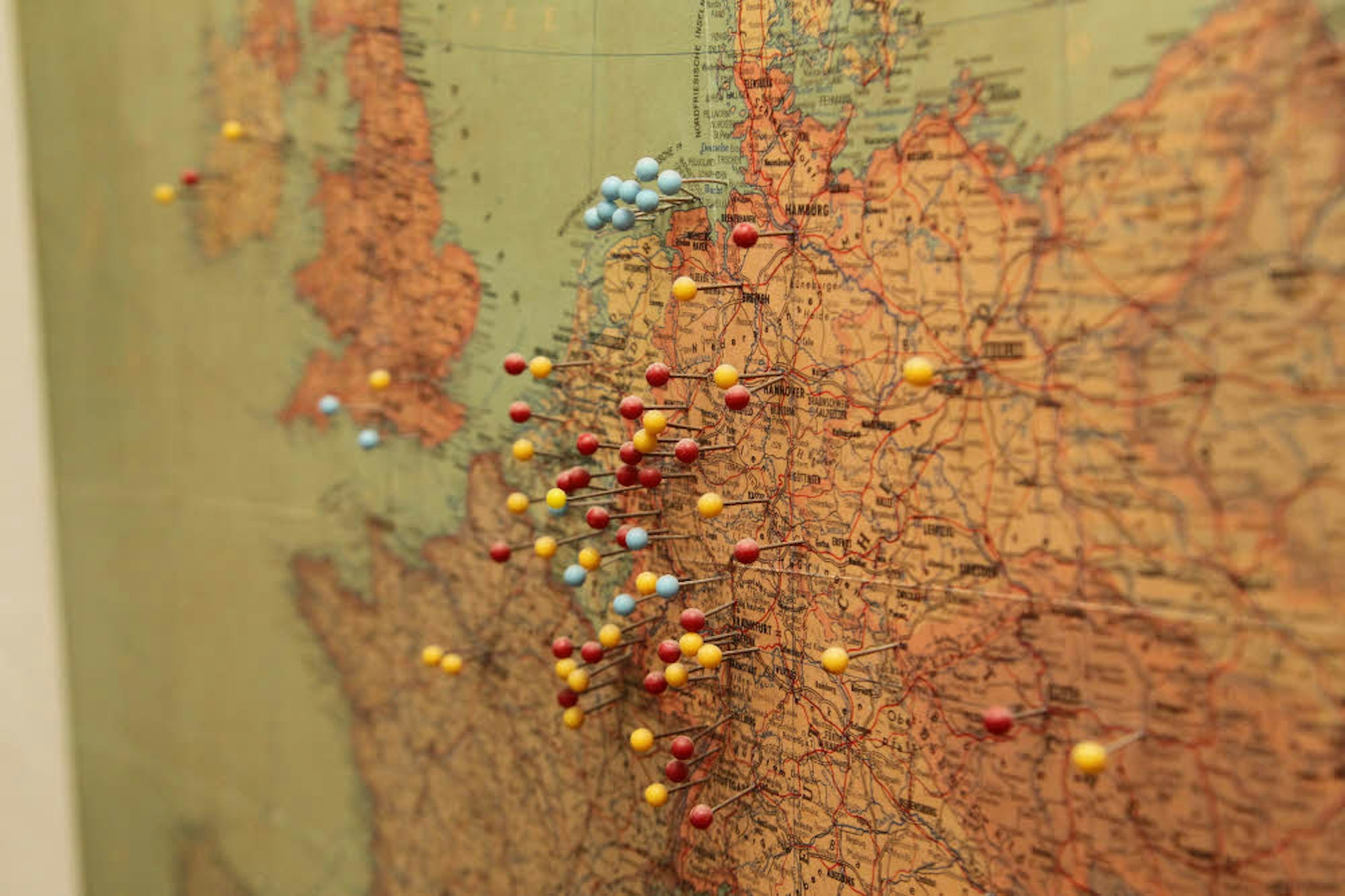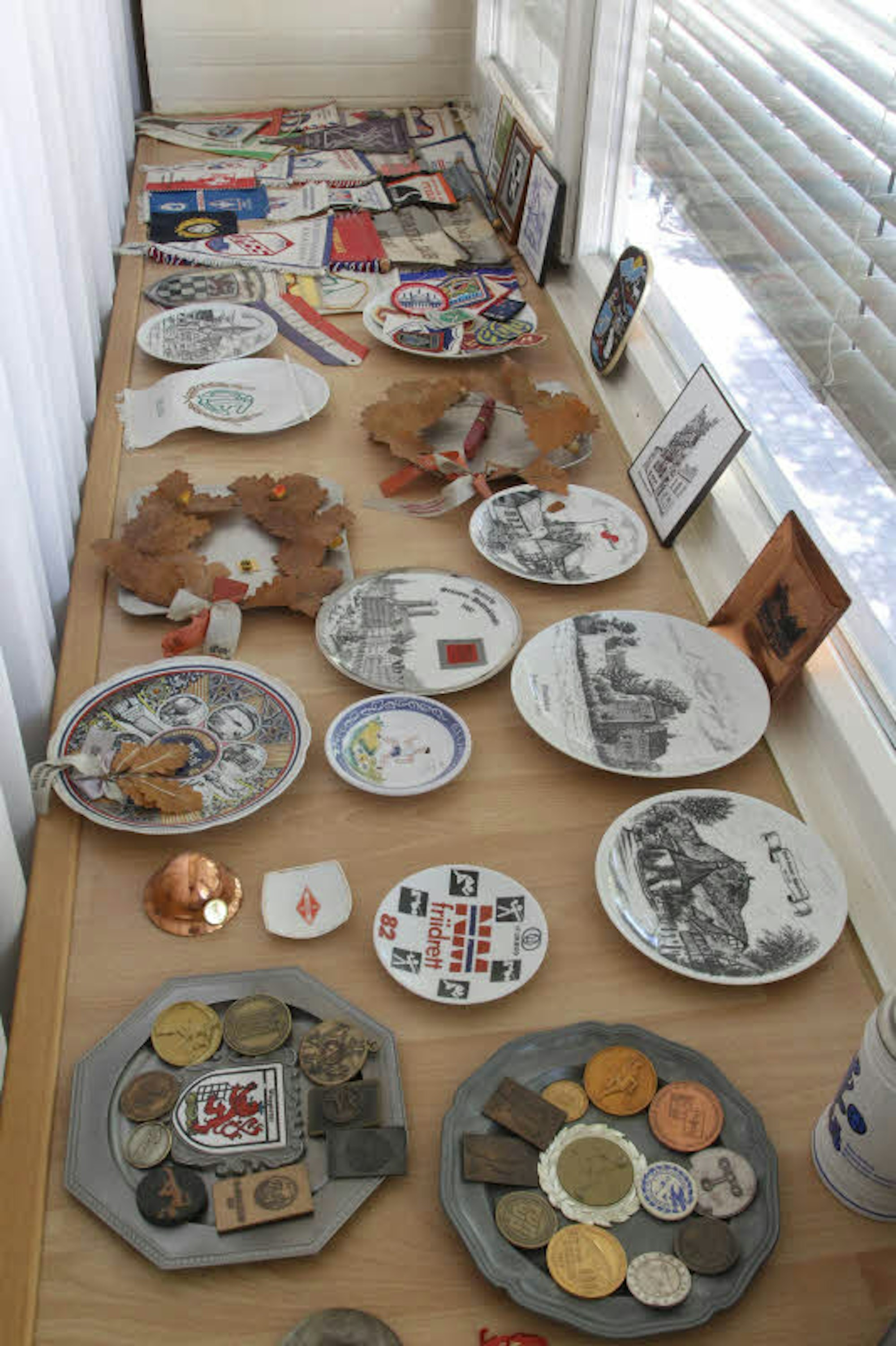 Jede Menge Medaillen und Ehrungen erlief der 73-Jährige, die mit Nadeln gespickte Karte bezeugt, wo er schon überall startete.