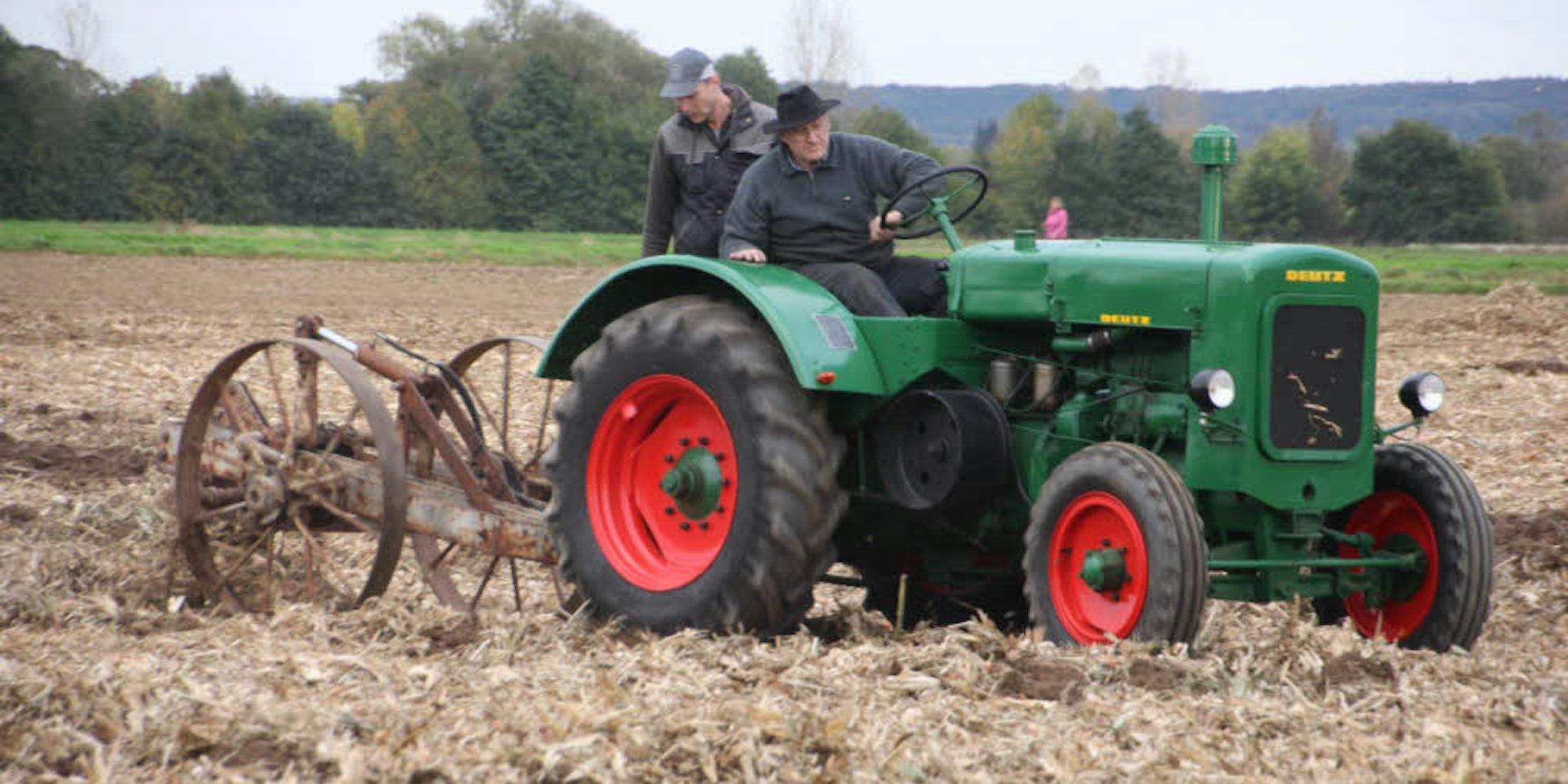 Mit dem Deutz von 1951 ziehen Vater und Sohn Coenen Furche um Furche.